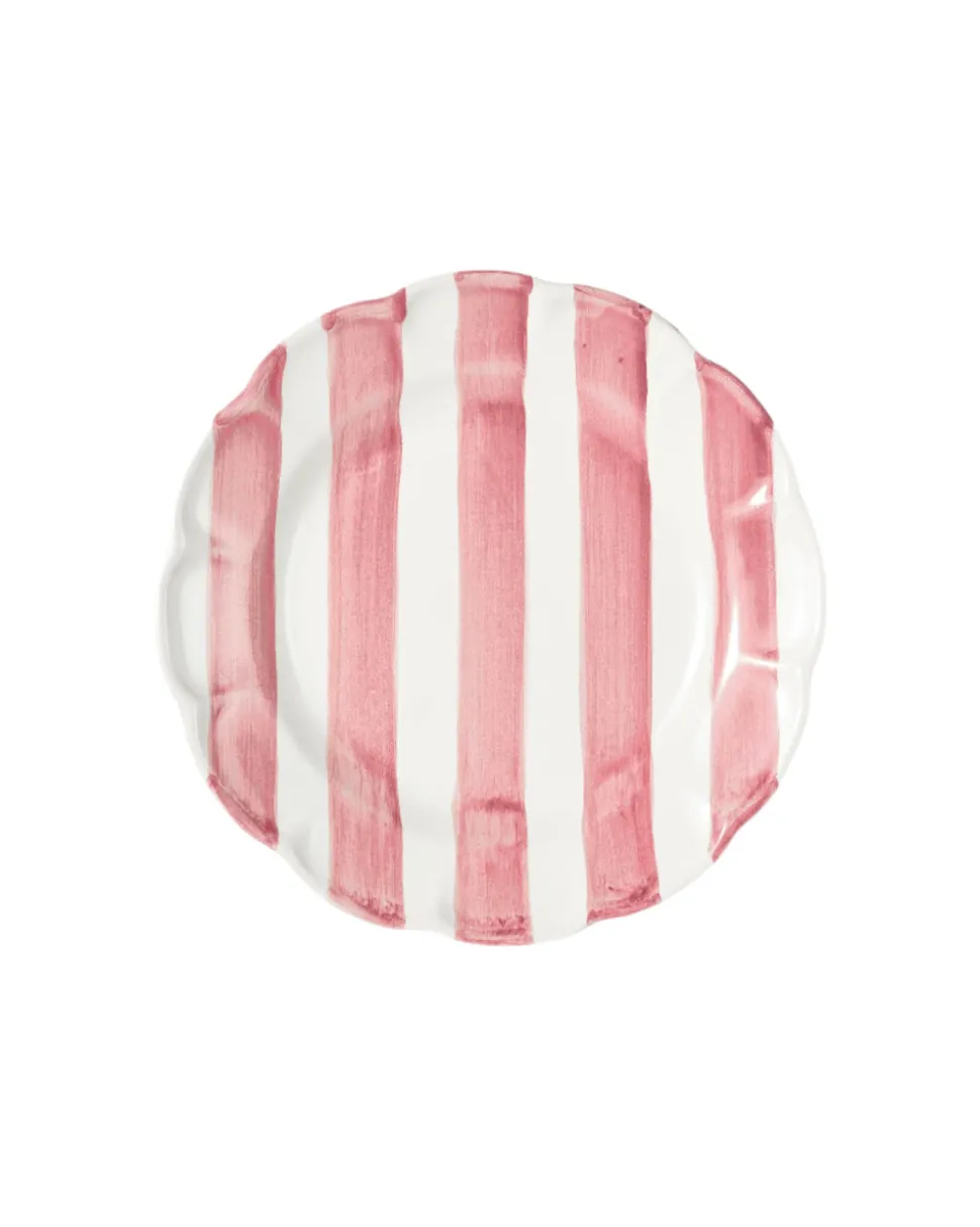 Inspired by the pages of Cabana—a magazine for a new generation of globetrotters—Casa Cabana’s homewares both explore and expand the worlds we share with our interiors. Designed in-house and hand crafted by artisans the world over, each piece feels unique, collectible, and at once part of your home. Handcrafted in Umbria, the Righe Dessert Plate, Pink is a playful addition to your table. Mix and match colors to create a vibrant table setting. The colorful stripes will allow you to combine these plates any items you may want. From a simple white tablecloth to a fun floral one, the possibilities are infinite.