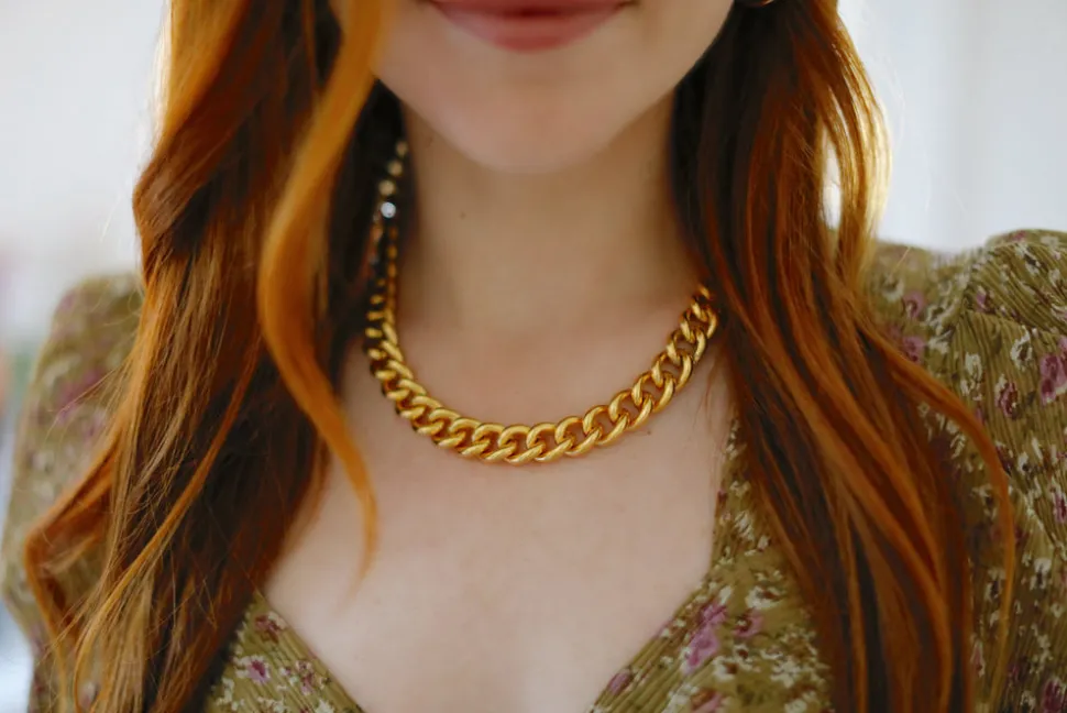 The mother-daughter duo behind Brinker + Eliza combine their experience in metalsmithing and fashion to create incredibly unique jewelry that feels custom-made. Employing pearls, shells, and earth’s most prized organic forms, these are pieces to be not just worn but treasured. Solid and chic, the Ringleader Necklace boasts a 24 karat antique gold plated hefty cable chain. Quietly elegant; endless confidence.