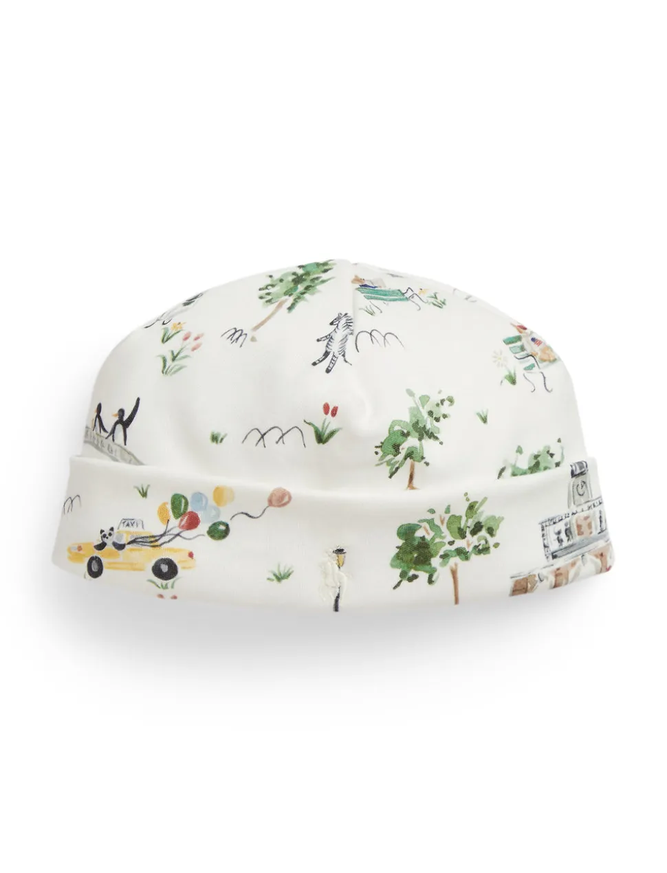 Part of a limited-edition capsule with a New York City theme, this beanie was designed in collaboration with celebrated watercolorist Riley Sheehey. Its whimsical motif—which is exclusive to this collection—was inspired by classic children’s book illustrations as well as archival Ralph Lauren pieces from the ’80s, ’90s, and early 2000s. The RL Baby x Riley Sheehey Beanie is a snug beanie hat for baby in a signature gift box.