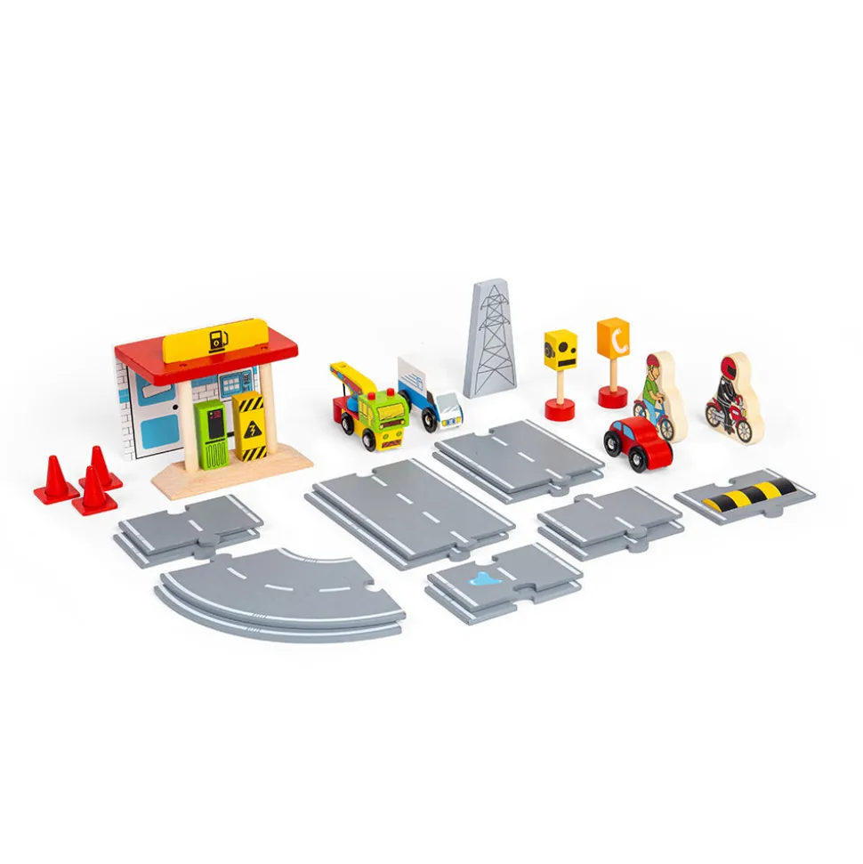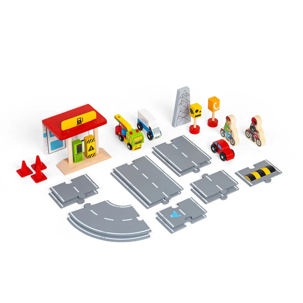 Quality has always been at the heart of Bigjigs Toys, a family business that began in 1985 with jigsaws crafted from a garden shed in Kent, England. Today the company boasts a wide range of toys and games that are not only safe, and made to last, but complement childhood development through fun, exploration and learning. Little petrol heads can kit out their roadway set (or any Bigjigs Rail train set) with Roadway Accessory Pack, a bumper pack of 25 road accessories. It includes motorcyclists, traffic lights, road signs, vehicles, cones, pieces of road track and more.