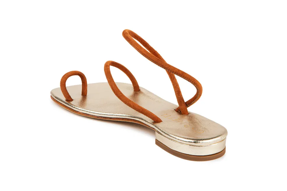California-born designer Claudia Lucia Aragon dreamt up Cornetti while living and studying along the Amalfi Coast. Each sandal is meticulously crafted to last for long, well-loved summers—made from the highest quality and mindfully sourced leathers. Cornetti, which translates to “little bull horns,” is a symbol of luck that has been defined by Italian culture since ancient times. The Romelide in Tobacco is a celebration of summer, crafted in brown calfskin with a subtly stacked heel and artful detailing.