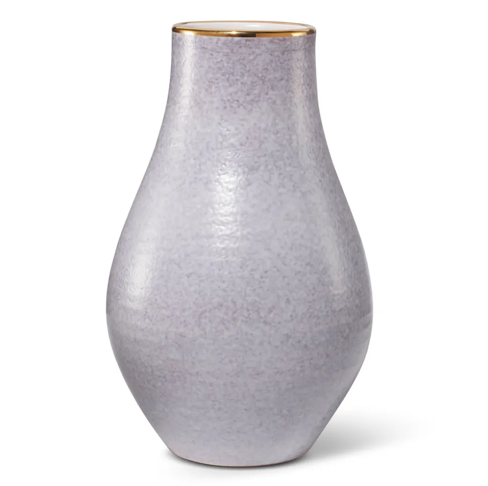 Effortless, beautiful living is what’s important to Aerin Lauder. That ease and refinement shines through in every detail of her collections of beauty products, home decor, and fashion accessories. The Romina Vases in Lavender Haze are a collection of beautifully shaped vases, in three convenient sizes, finished with gold rims and an artisanal glaze that provides depth. Subtle ribbing made by the potter’s hand adds further character. The wide opening allows for a full arrangement of flowers perfectly suited to a dining table centerpiece.