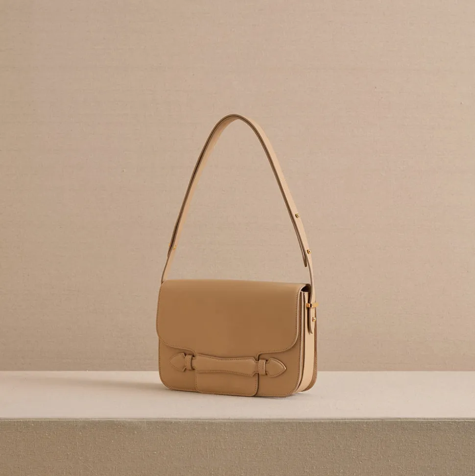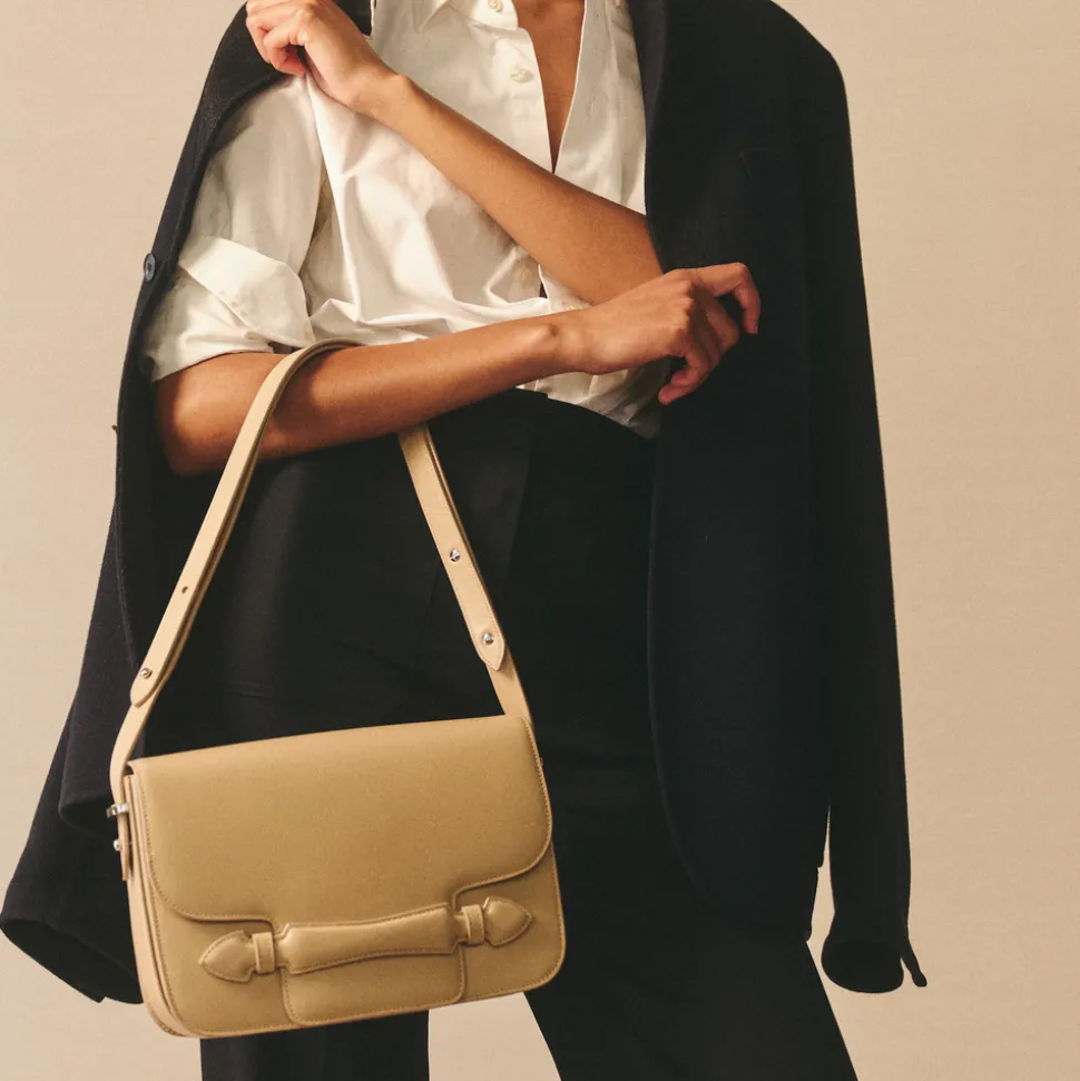 Founded in 1845 in Boston, Mark Cross is the quintessential American luxury brand with an uncompromising commitment to quality, elevated details, and nonchalant reworking of classic silhouettes. The signature shapes are discrete icons of pop culture, notably the overnight valise carried by Grace Kelly in Rear Window, designed by Gerald Murphy, the former president and ‘Lost Generation’ figurehead. The Romy 25 in Box Calf Palmellato Natural is the ultimate everyday bag, designed for effortless versatility. Crafted in structured palmellato leather with tonal stitching, it features signature collar studs for easy adjustment from shoulder to crossbody length. Thoughtful exterior and interior pockets provide intuitive organization, while a soft lambskin suede lining in natural beige offers a luxurious finish.
