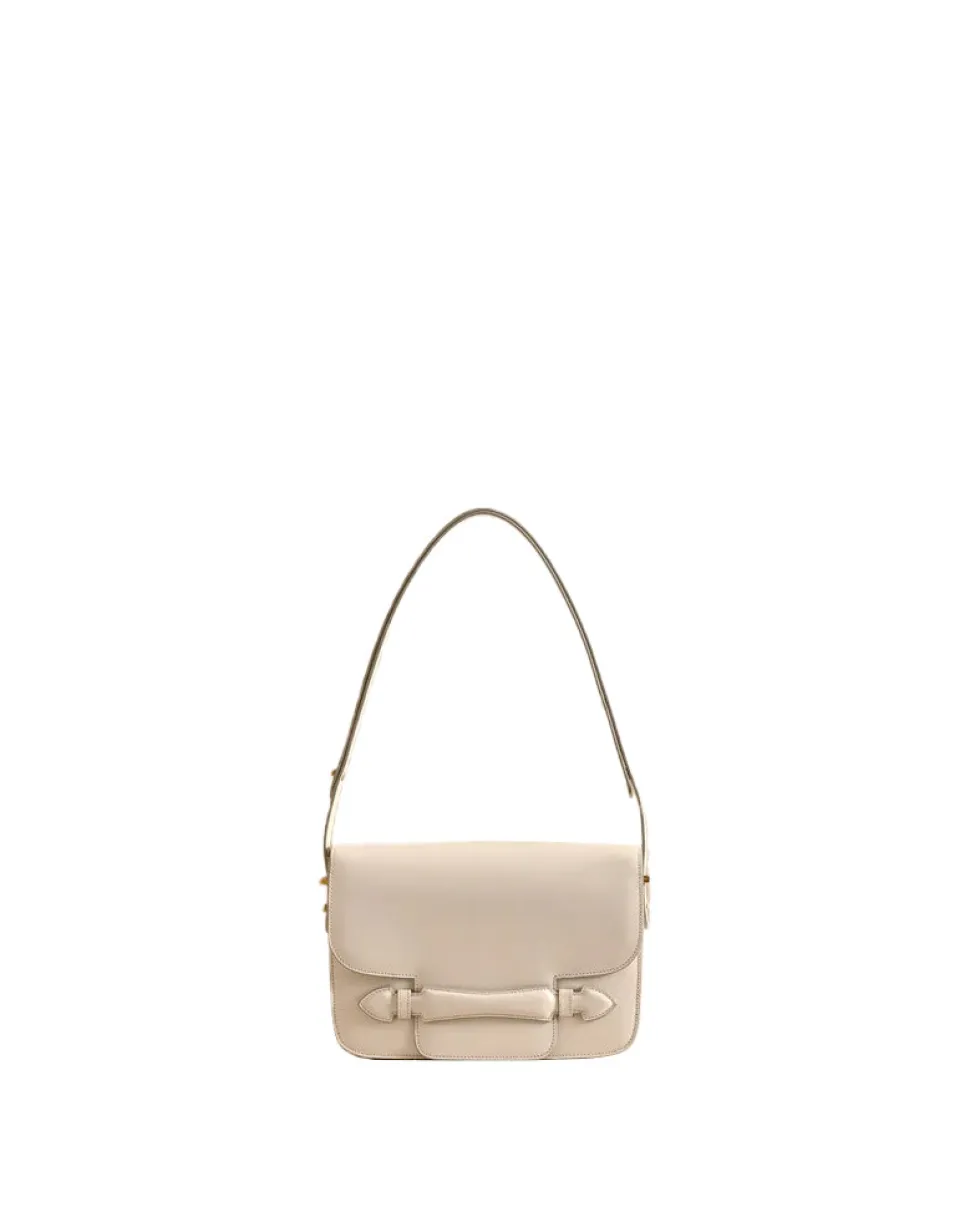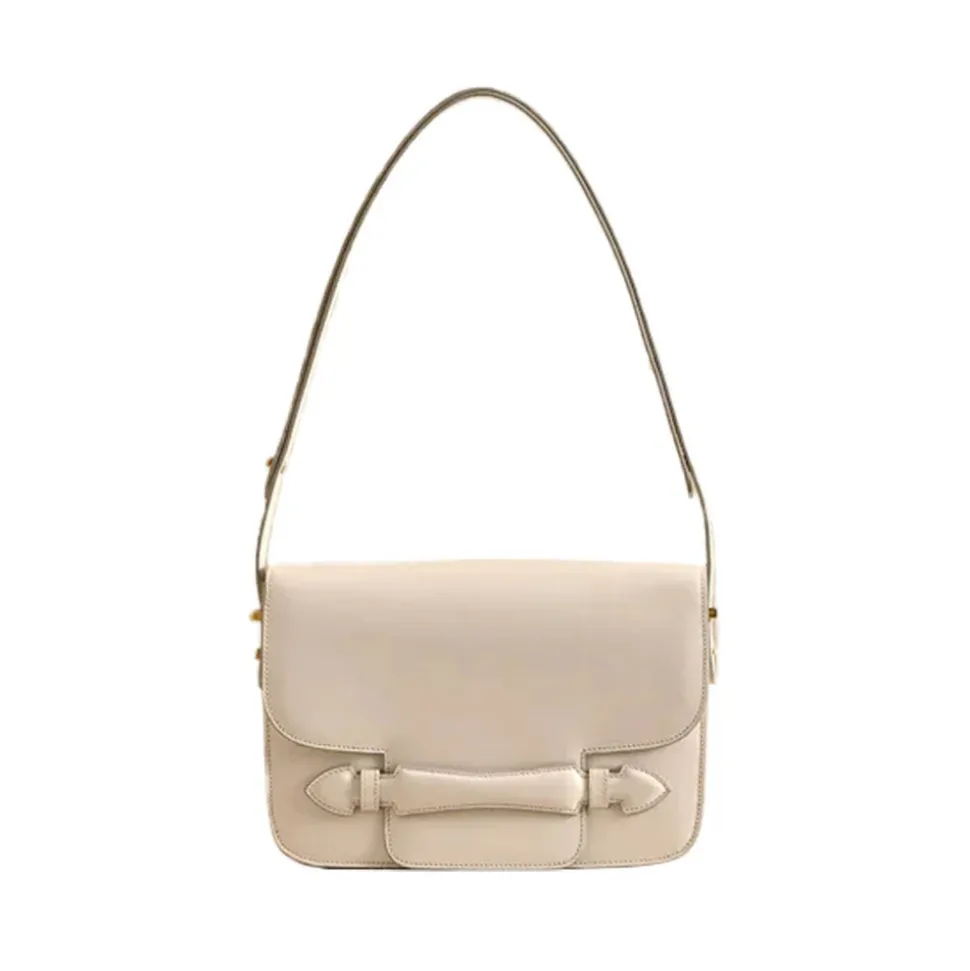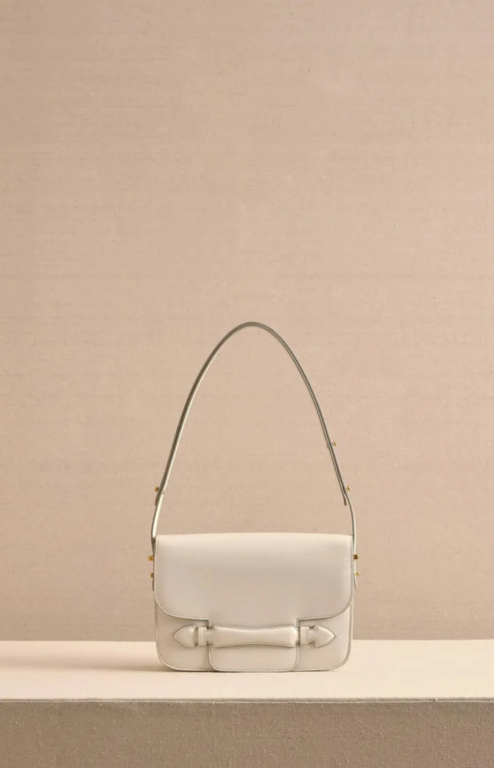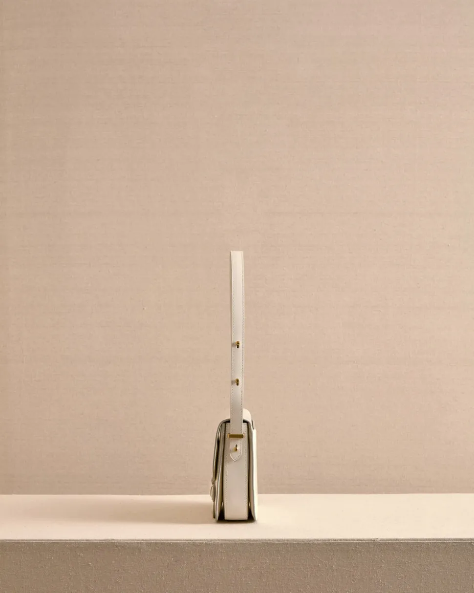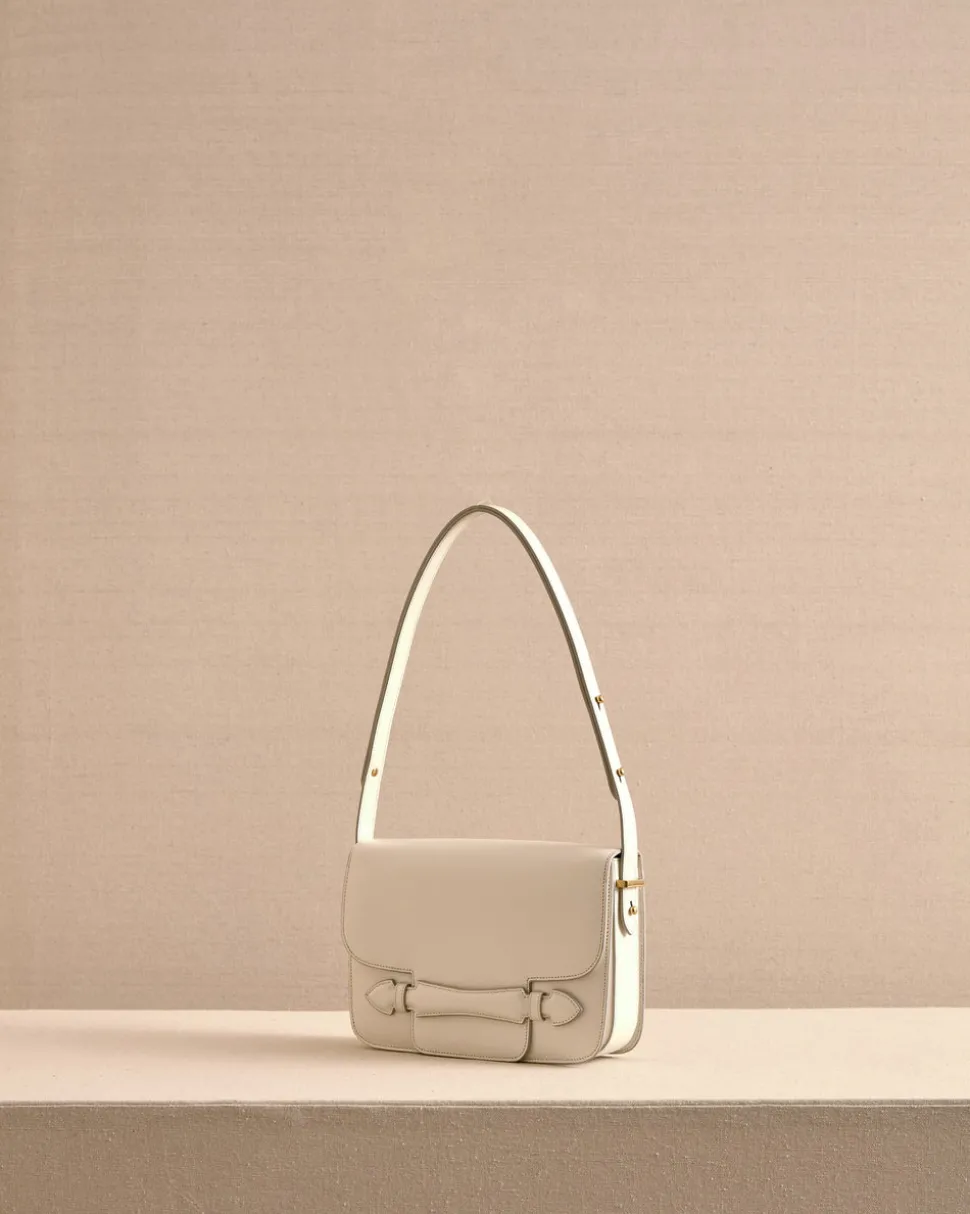 Founded in 1845 in Boston, Mark Cross is the quintessential American luxury brand with an uncompromising commitment to quality, elevated details, and nonchalant reworking of classic silhouettes. The signature shapes are discrete icons of pop culture, notably the overnight valise carried by Grace Kelly in Rear Window, designed by Gerald Murphy, the former president and ‘Lost Generation’ figurehead. The Romy 25 in Ivory is the ultimate everyday bag. Signature Mark Cross collar studs allow the shoulder strap to effortlessly transition to a crossbody length, while rear, front and interior pockets offer all of the organization you need. Crafted from box calf palmellato leather in classic ivory with tonal stitching, and lined in the softest lambskin suede in natural beige, there’s nothing not to love about this bag.