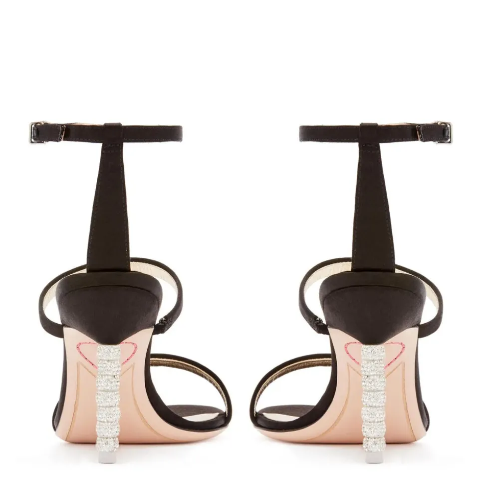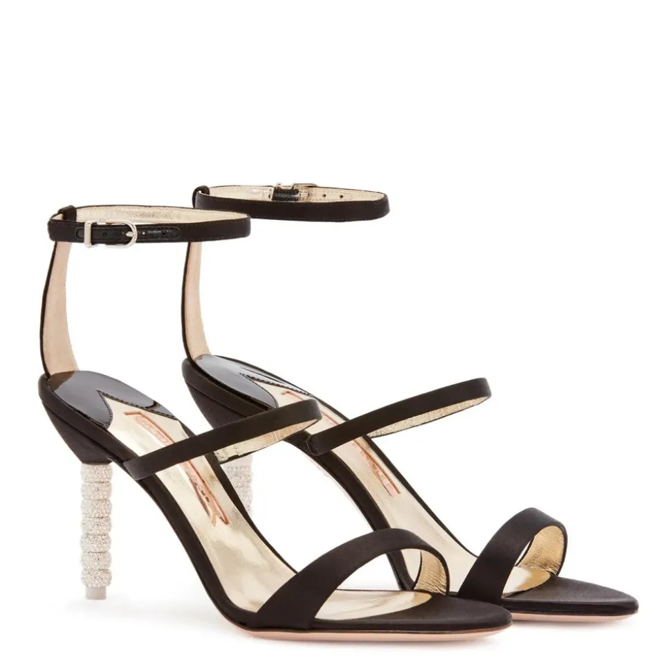 London-based Sophia Webster burst onto the scene in 2013, instantly renowned for her uniquely uplifting designs.With a background in fine art, and an eye for quality, inclusivity and sustainability, she creates footwear and accessories that embrace both an incredible fantasy and a gorgeous reality. A romantic piece, the Rosalind Crystal Mid Sandal features a multi-strap and is finished with a sparkling crystal beaded heel. It is a statement sandal that keeps its cool.