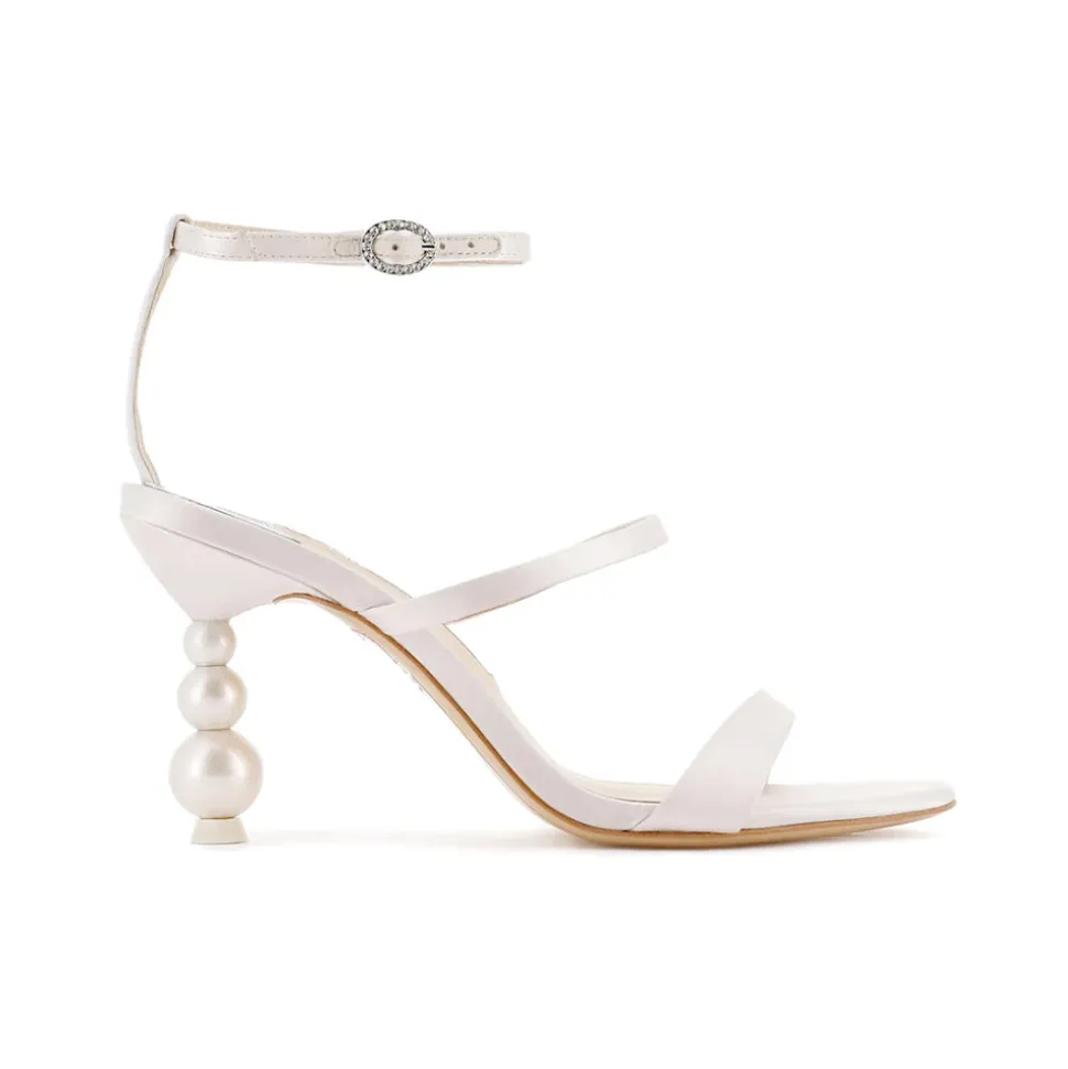 London-based Sophia Webster burst onto the scene in 2013, instantly renowned for her uniquely uplifting designs.With a background in fine art, and an eye for quality, inclusivity and sustainability, she creates footwear and accessories that embrace both an incredible fantasy and a gorgeous reality. A romantic piece, the Rosalind Pearl Mid Sandal in Ivory & Pearl features a multi-strap and is finished with a sparkling pearled heel. It’s a statement sandal that keeps its cool.