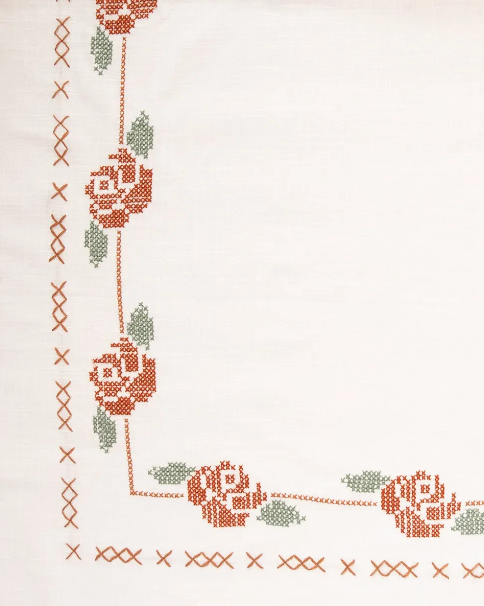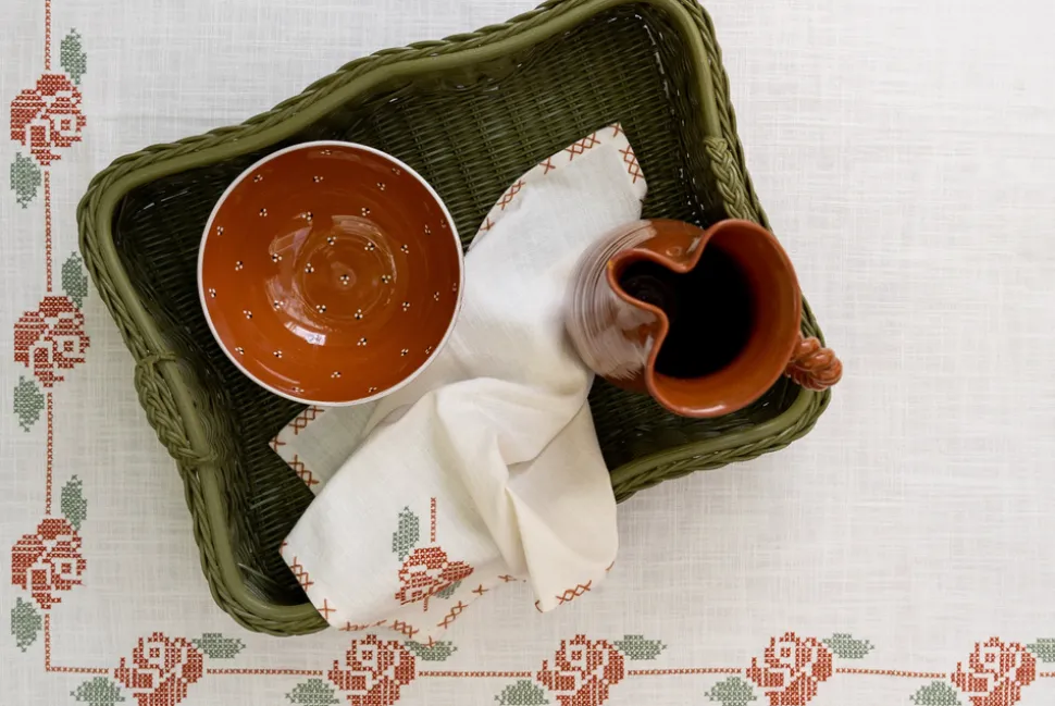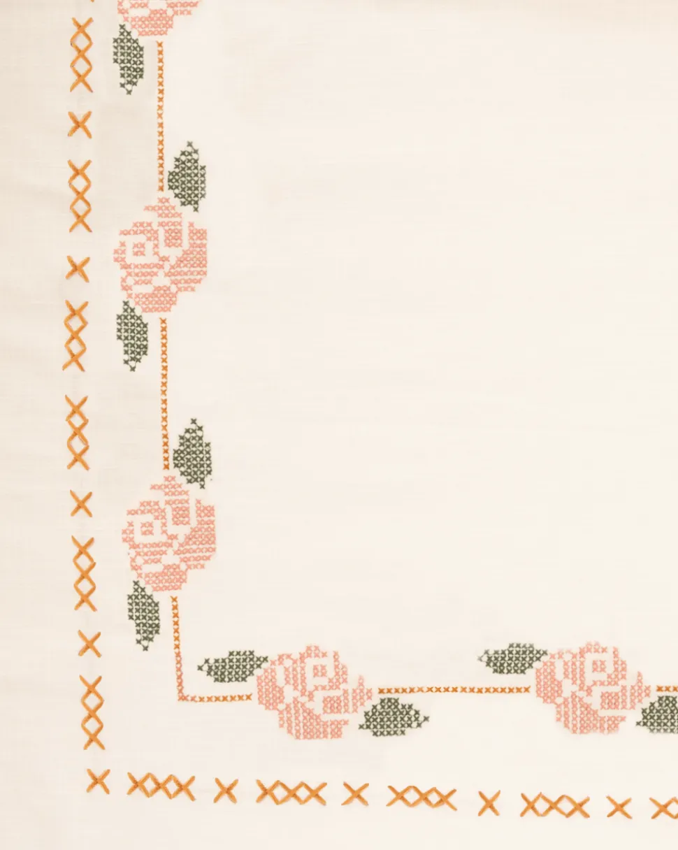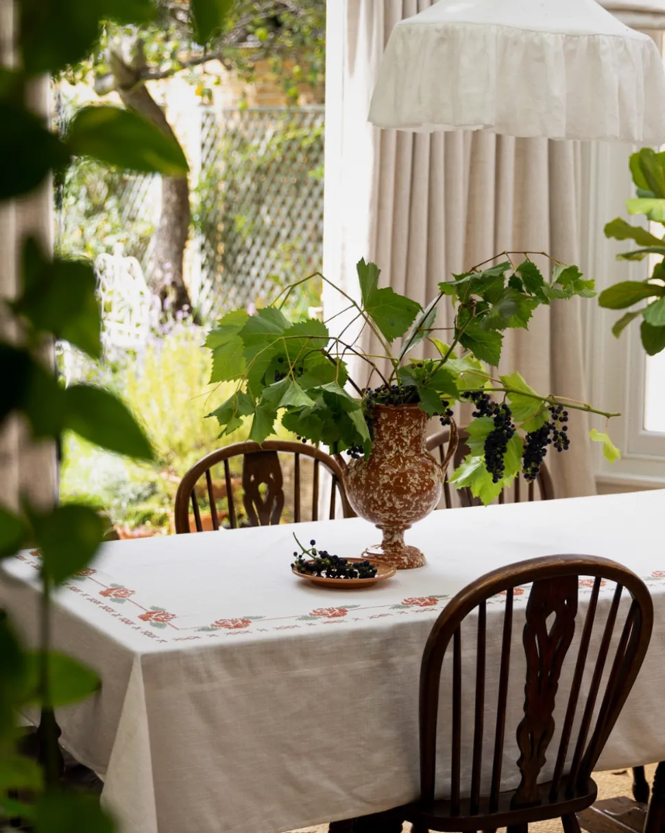 A former fashion and lifestyle journalist, Louise Roe founded Sharland England to bring inspiration and nostalgia to household items. The brand supports slow, meaningful design and traditional artisanship with tabletop, household and rattan items that are built to last. Inspired by a gorgeous piece of vintage embroidery owned by the founder’s great-grandmother, a delicate cross-stitched rose motif adorns the Rose Tapestry Tablecloth. The border is hand-stitched by artisans in India, making this a truly unique, charming piece.