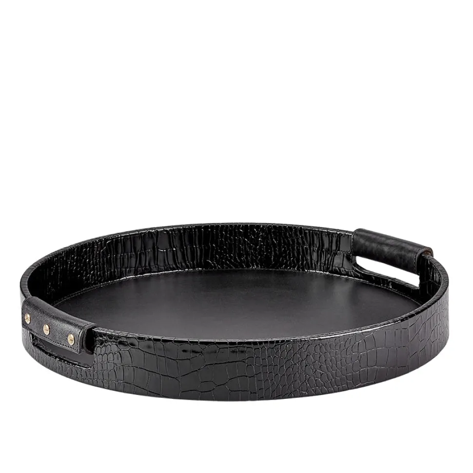 Founded in 1969, Graphic Image’s notebooks and accessories are united by the finest writing text paper, meticulously crafted smyth-sewn binding, and clean design. Working with tanneries in Italy and France, and embracing at once the unconventional and the traditional these are products that offer profound quality, functionality, and unyielding style. Finished in Italian embossed leather, with complementary interior leather bottom and leather handles, the Round Leather Tray in Crocodile Embossed Leather looks stylish no matter where you use it. We love it for cocktails, but works just as well as a display item.