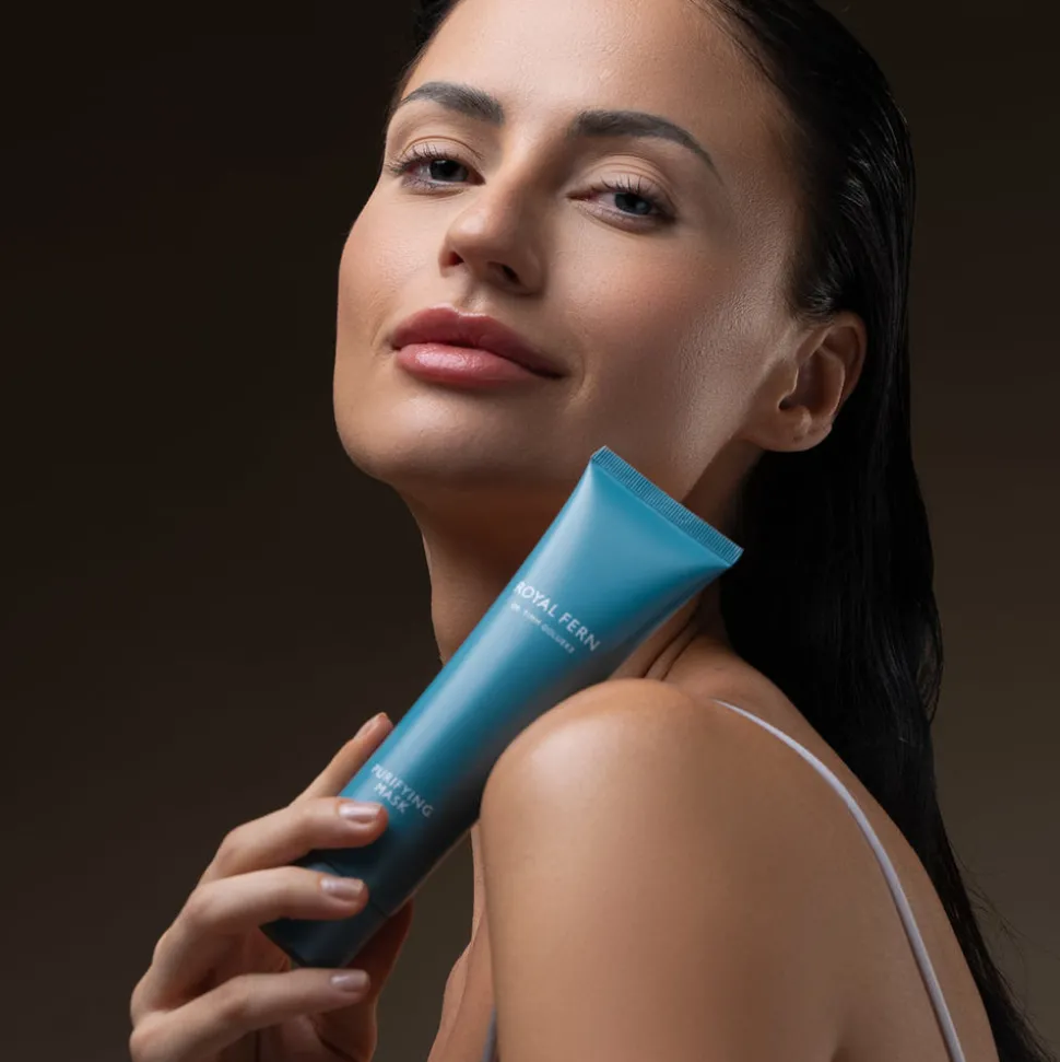 Royal Fern skincare sources ingredients from its namesake plant, which has survived for over 400 million years, staying evergreen, and resistant to UV radiation and environmental pollution. Harness its comprehensive protection mechanism and employ its cellular defense boosting properties with products at the intersection of nature’s wonder and cutting-edge cosmetic science. Infused with a blend of natural extracts and skin-loving nutrients, the Purifying Mask goes beyond the ordinary. Effortlessly drawing out impurities, excess oils, and environmental toxins, it leaves your complexion refreshed and revitalized. Unlike conventional purifying masks that can strip your skin of essential moisture, it provides a luxurious, pampering sensation.