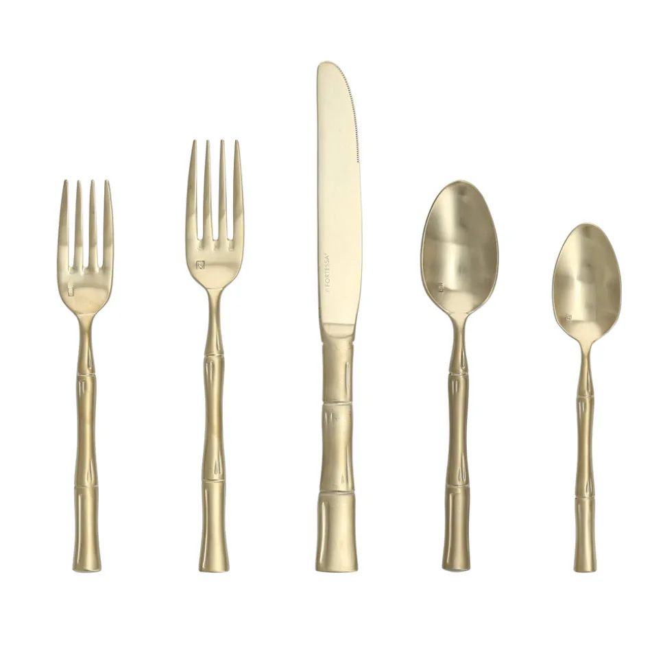 Founded in 1993 by brothers Eric and Scott Hamberger, Fortessa was inspired by their passion for high-quality dinnerware and the shared joy of meals around the table. The brand is committed to creating thoughtfully designed, durable products that elevate every moment—from special gatherings to everyday routines. Evoking the spirit of South Seas adventure, the Royal Pacific Brushed Champagne Flatware Set infuses a touch of tropical charm to the table with its sleek bamboo-like design.
