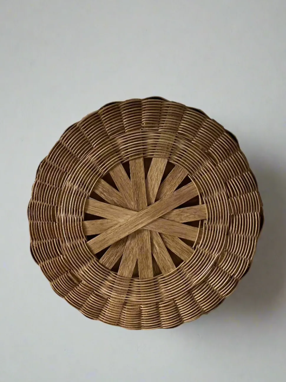 Underwater Weaving Studio is an American basket atelier founded by Erin Pollard, rooted in elevated craftsmanship. Specializing in heirloom quality rattan baskets that elevate the every day, each handmade design is made to order by generations dedicated to the timeless preservation of woven utility for a down-to-earth contemporary lifestyle. Intricately handwoven with durable rattan, this round, oversized Sabbath Tray, Deep is a minimalist, functional, and stylish storage solution for any area in your home. Use it to organize your items in the kitchen, as a catch-all in the living room, on the wall, or from the ceiling. The natural rattan fibers offer beautiful color variation, and the double-bottom wicker bottom means it’s just as lovely empty as filled with seasonal offerings.