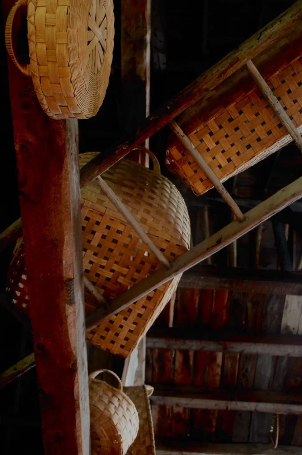 100% Rattan. Designed and hand-crafted by Erin and Peggy Pollard. Beautiful color variation from the natural rattan fibers. Made in United States.