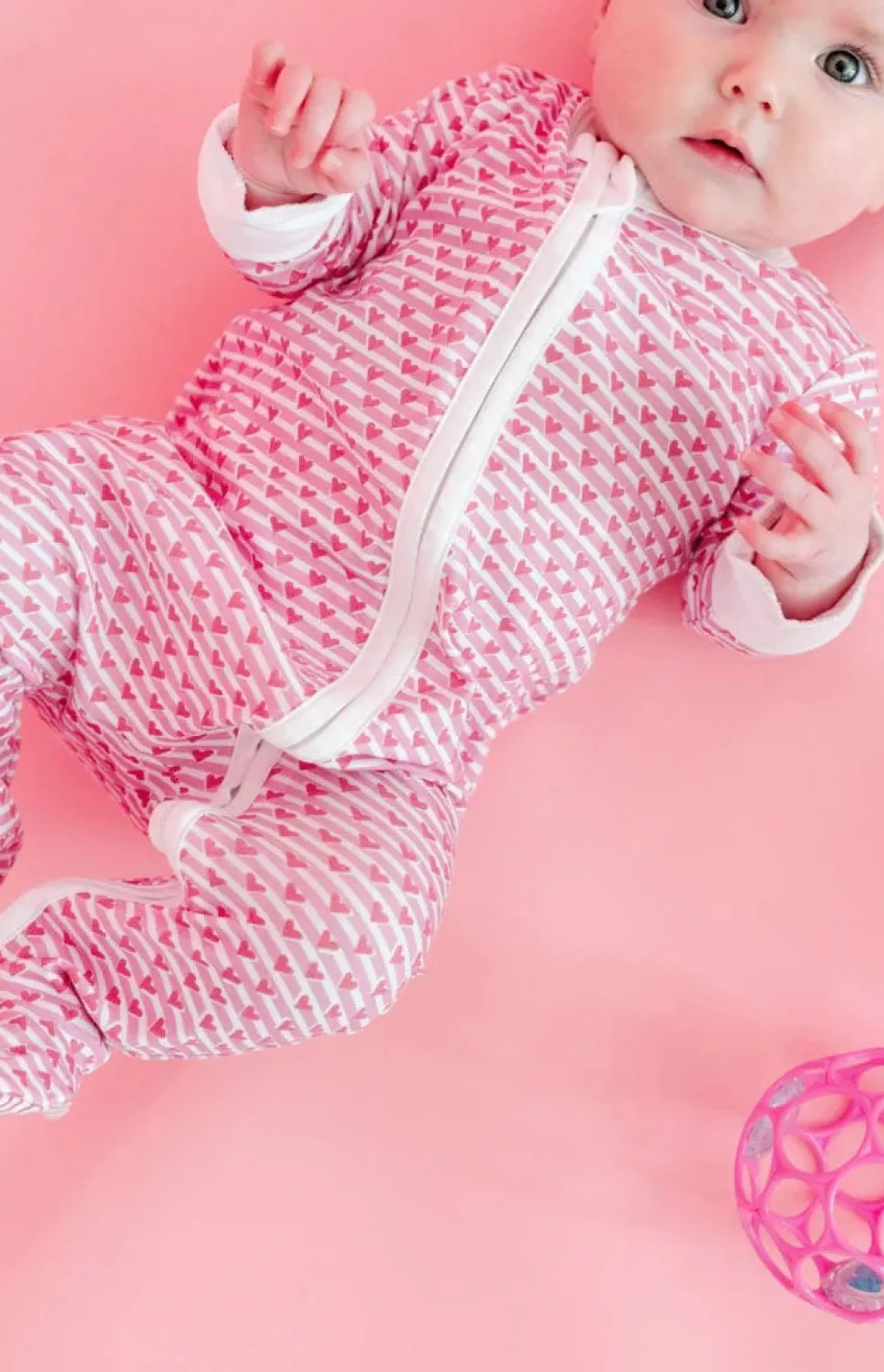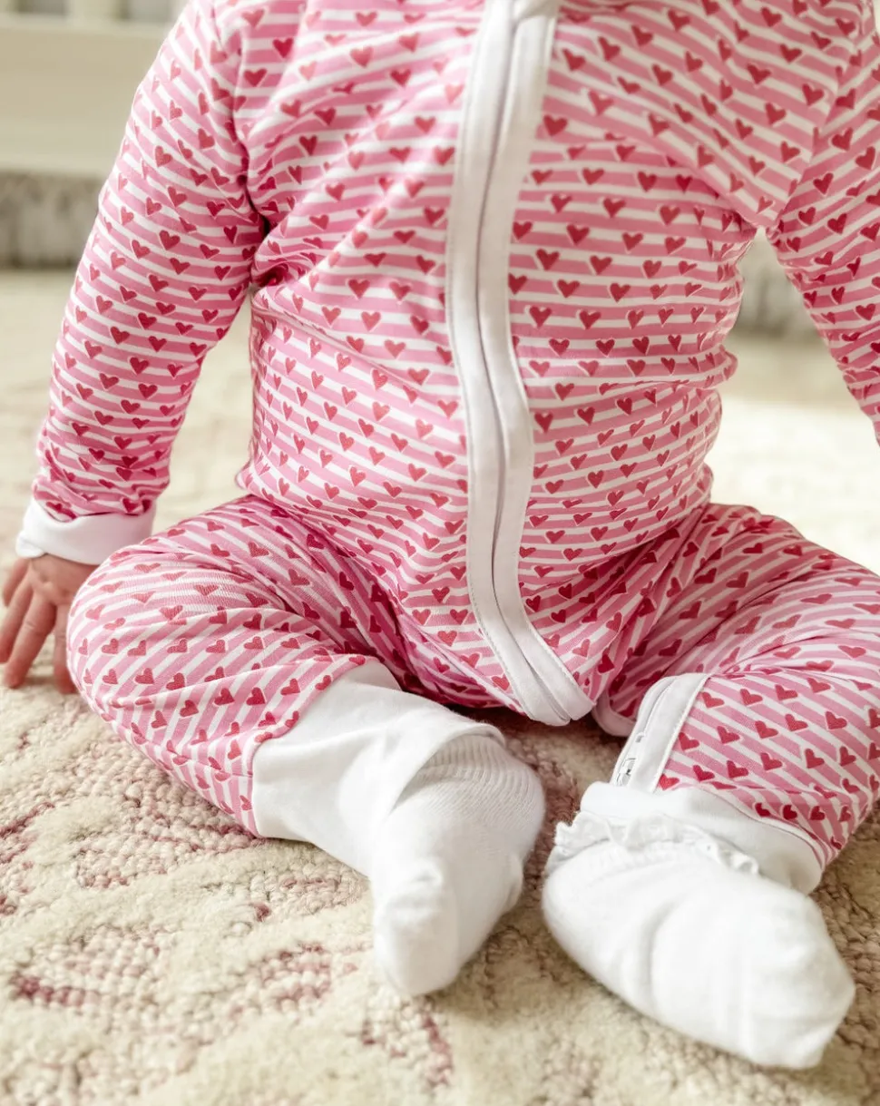Designed with a mom’s love and made with care, Boston-based Joy Street produces small-batch kids clothes that look classic from afar, but delight in details. Crafted in luxurious 100% Peruvian pima cotton in a female-run factory, every print is hand-drawn by the brand’s founder, a new mom who prizes fit and quality above all else, and isn’t afraid of a little fun. The Sailor Hearts Zip Baby Onesie in Posie Pink‚ with two of the most delightful patterns, stripes and hearts‚ boasts a soft and durable construction that both parents and baby will love.