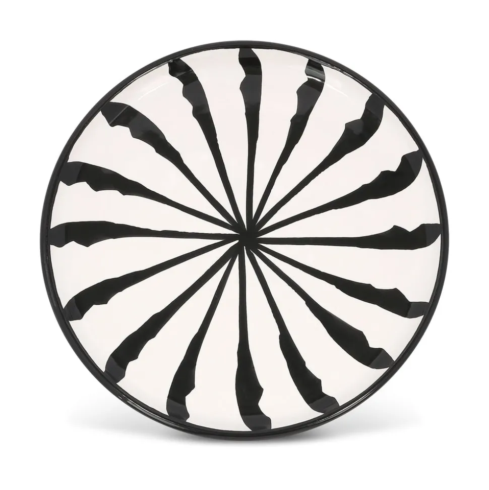 Using ancient techniques and Lebrillo motifs that date back to the 16th century, each Pomelo Casa piece is handmade and hand-painted by only five small, family-run workshops in Granada. For the first time, they are being exported outside of Europe, so that the gorgeous, simple, timeless patterns of Southern Spain can be shared with the world, making it brighter in the process. The Salad Plate With Candy Cane Stripes in black and white is a functional celebration of tradition that can be used for dining, decoration, or wall mounted for display.