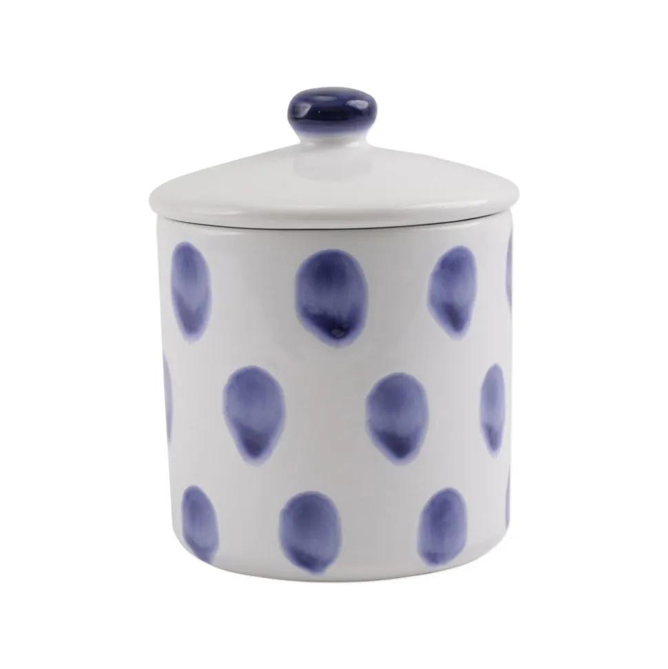 Inspired by Italian lifestyle, history, and culture, VIETRI uses the highest-quality clays from the soil of Italy’s countryside to produce beautiful, everyday items for your home. Hand-painted details, quality glazes, and fine craftsmanship help you savor the moments spent at your table and the company of those who join it. Liven up your everyday dinner parties with the playful designs of the Santorini Dot Small Canister, inspired by a well-traveled lifestyle.
