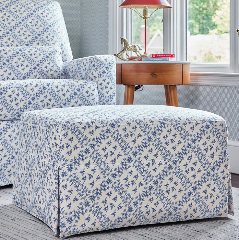 Made to treasure, Namesake brings quiet sophistication to the nursery and beyond. Imbuing heirloom-quality craftsmanship with modern sensibility, these timeless essentials are made to be cherished for years to come. The Sarah Flint x Namesake Crawford Gliding Ottoman in Blue Lattice Performance Eco-Weave reflects the signature elegance of designer Sarah Flint, blending traditional charm with modern functionality. Paired with the coordinating Crawford Glider, the ottoman’s gentle motion helps create a calming rhythm for bedtime routines.
