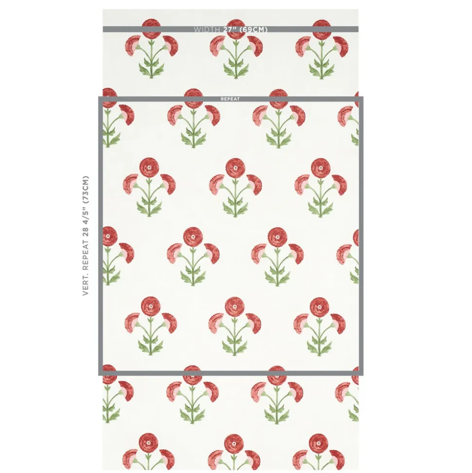Founded by Frederic Schumacher in 1889 on Fifth Avenue in New York, Schumacher design transcend trends and time with generations-tested unwavering devotion to beauty and quality. Their luxury pillows, fabric, wallpaper, trim, and furniture allow decorators and shoppers alike to create with total confidence. Inspired by traditional Indian hand-block designs, theSaranda Flower Wallpaper features stylized flowers printed on fibrous wallpaper for a painterly effect.