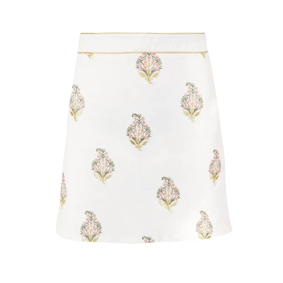The brainchild of dynamic Iranian mother-daughter duo, Roshanak Varasteh and Leily Amirsardary Ahmed, RosewaterHouse is more than a fashion label; it is a testament to heritage, artisanal craftsmanship, and timeless design. Drawing inspiration from their cherished family heirlooms, Roshanak and Leily pay homage to the rich cultural tapestry of the Middle East, working exclusively with local artisans who breathe new life into age-old techniques, crafting exquisite, limited-edition garments that transcend age, style, and trends. These pieces are sure to become some of your most treasured. The Sarv Mini Skirt in White & Pink is fully embroidered in silk and gold thread on pure linen, with a structured fit and gold piping at the waistline—ideal for pairing with the brand’s lightweight voile blouse.