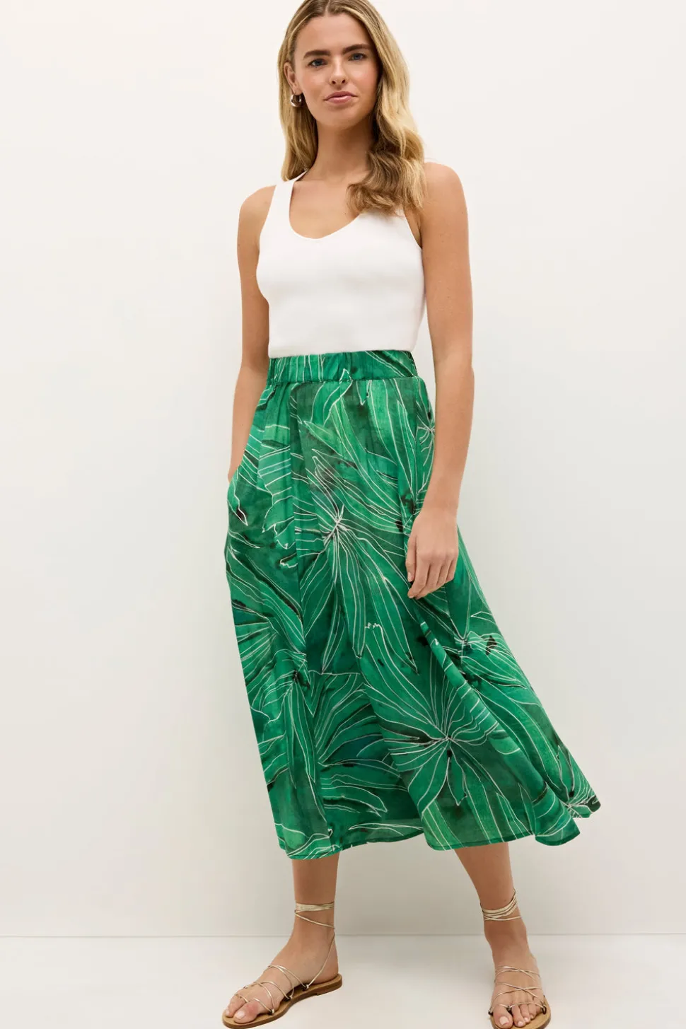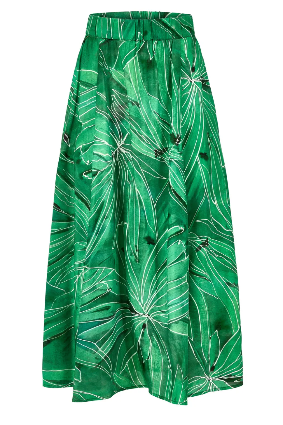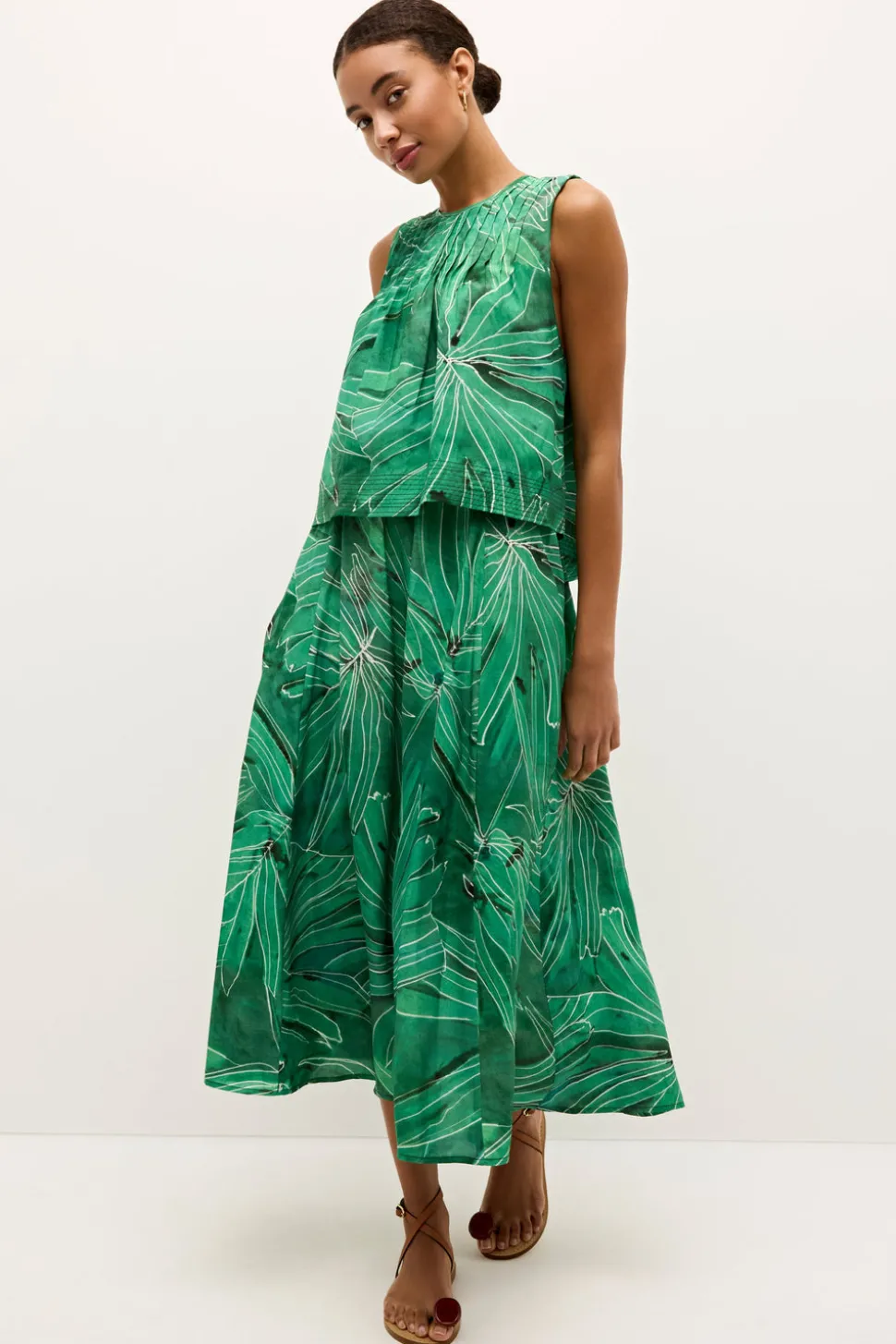 Empowering women through vivid hues and the joy of style, Sarah Doggett Evenson uses her archive of artistic prints, fine fabrics, and flattering silhouettes to make each Marie Oliver piece instantly uplifting. With a voluminous skirt, an elastic waistband, and pockets(!), Sasha Skirt in Amazon is as fun to wear as it is flattering. Marie Oliver has played up the romance of the silhouette with the addition of a saturated botanical in deep emerald green.