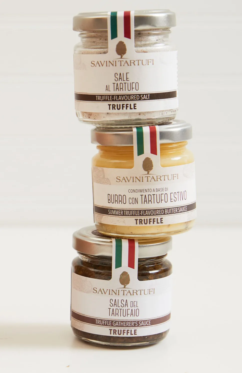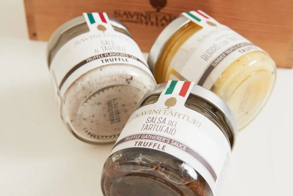 Includes: Truffle-flavoured salt burro con tartufo estivo / summer truffle-flavoured butter sauce, salsa del tartufaio / truffle gatherer’s sauce. Arrives in a gift box.