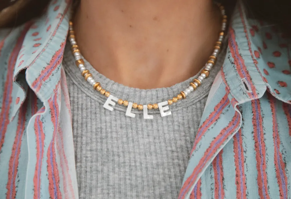 The mother-daughter duo behind Brinker + Eliza combine their experience in metalsmithing and fashion to create incredibly unique jewelry that feels custom-made. Employing pearls, shells, and earth’s most prized organic forms, these are pieces to be not just worn but treasured. Customizable with your name, word, or initials, in mother-of-pearl letters, the Say My Name Necklace is the ultimate personalized piece. Making it even more special: those letters hang from a golden chain, string with semi-precious beads, no two of which are alike.