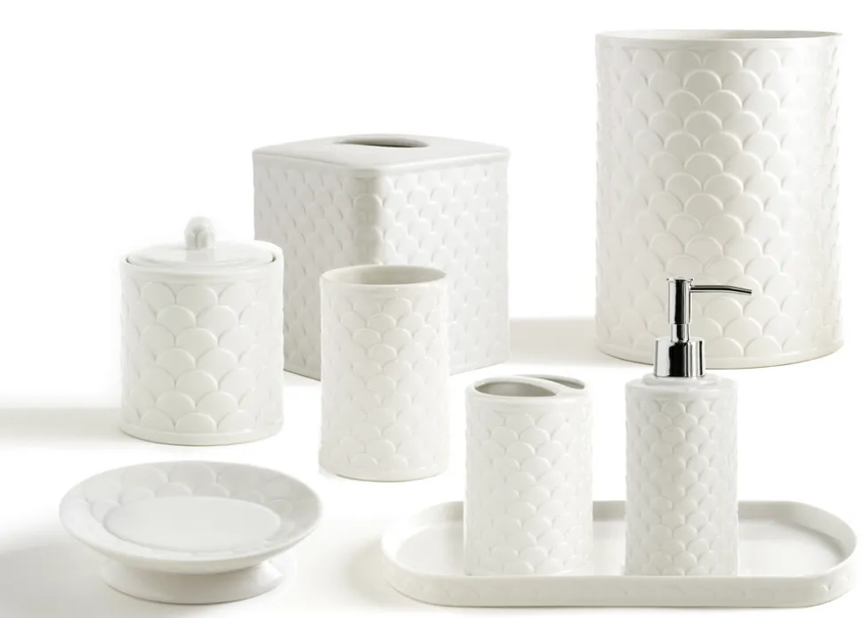Based in New York’s Garment District, Kassatex’s linens bring more than just a sense of luxury into the modern home. Founded with old world values and a contemporary sensibility, their towels, sheets, and home goods bring the very best of Manhattan living, with texture, comfort and style. Crafted from finely embossed porcelain, the Scala Collection is inspired by aquatic themes. On the Scala Bath Tray, you’ll find elegant scale patterns that will stand out in any restroom.