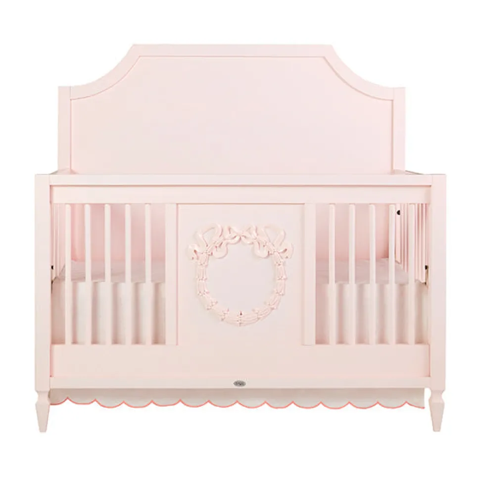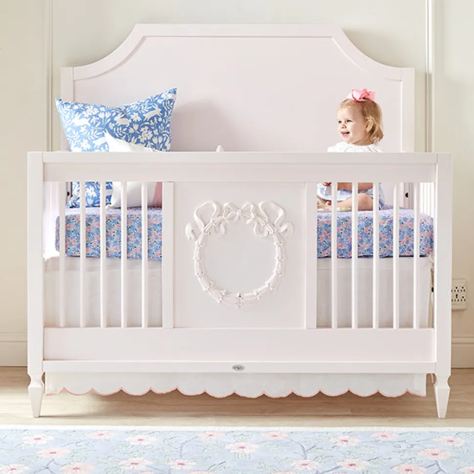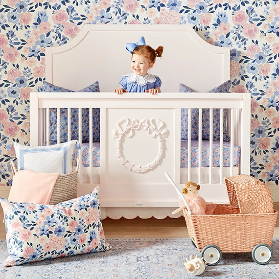 Founded on timeless design principles, Caitlin Wilson Design blends sophistication and uniqueness, embracing a variety of styles. The brand features textiles ranging from antique-inspired Persian rugs to custom pillows, wallpaper, lighting, furniture, and more. With a focus on pattern and color, Caitlin Wilson Design creates distinctive, signature interiors that bring out the full potential of every space. The Scallop Crib Skirt in Garden Blush is a sweet detail that will add timeless charm to your baby’s nursery. Its fresh green edge and delicate linen fabric allow it to pair with several of the Cait Kids patterns.