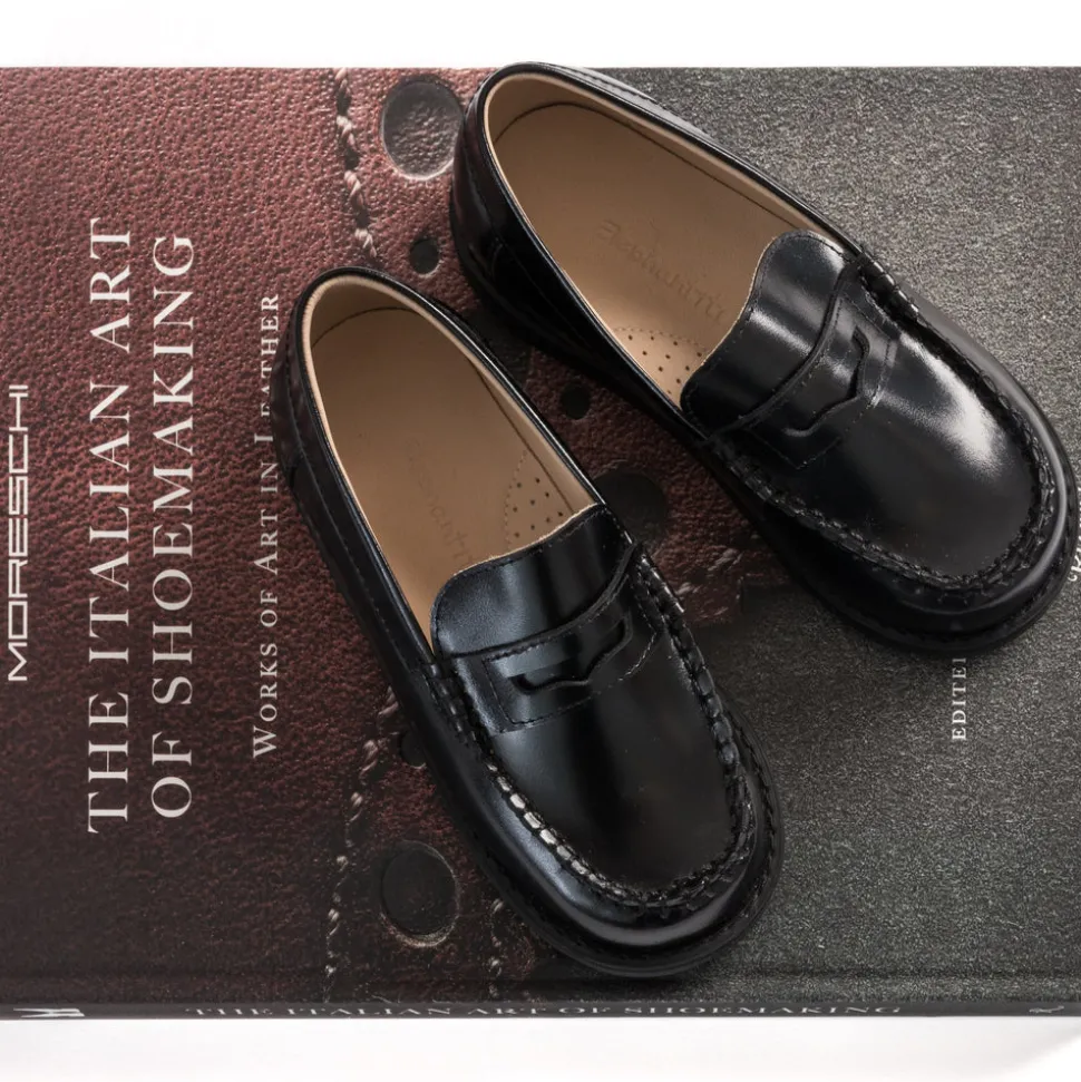 Female-founded and operated from Key Biscayne since 2004, Elephantito is a luxury children’s wear brand celebrated for its all-leather shoes. The brand produces its stylish, sturdy and sustainable shoes in its own factory—with only premium leathers from certified tanneries—so that they can oversee the quality of craftsmanship, fair conditions, and enduring elegance that go into every pair. Beautifully crafted with durable leather and hand-stitching details, the Scholar Moccasin in Black feature a classic silhouette with a penny keeper strap and easy slip-on entry. The cushioned footbed ensures comfort and support all day. Made with premium leather and natural materials, these loafers are durable and breathable. The rubber sole provides durability and flexibility, perfect for daily wear.