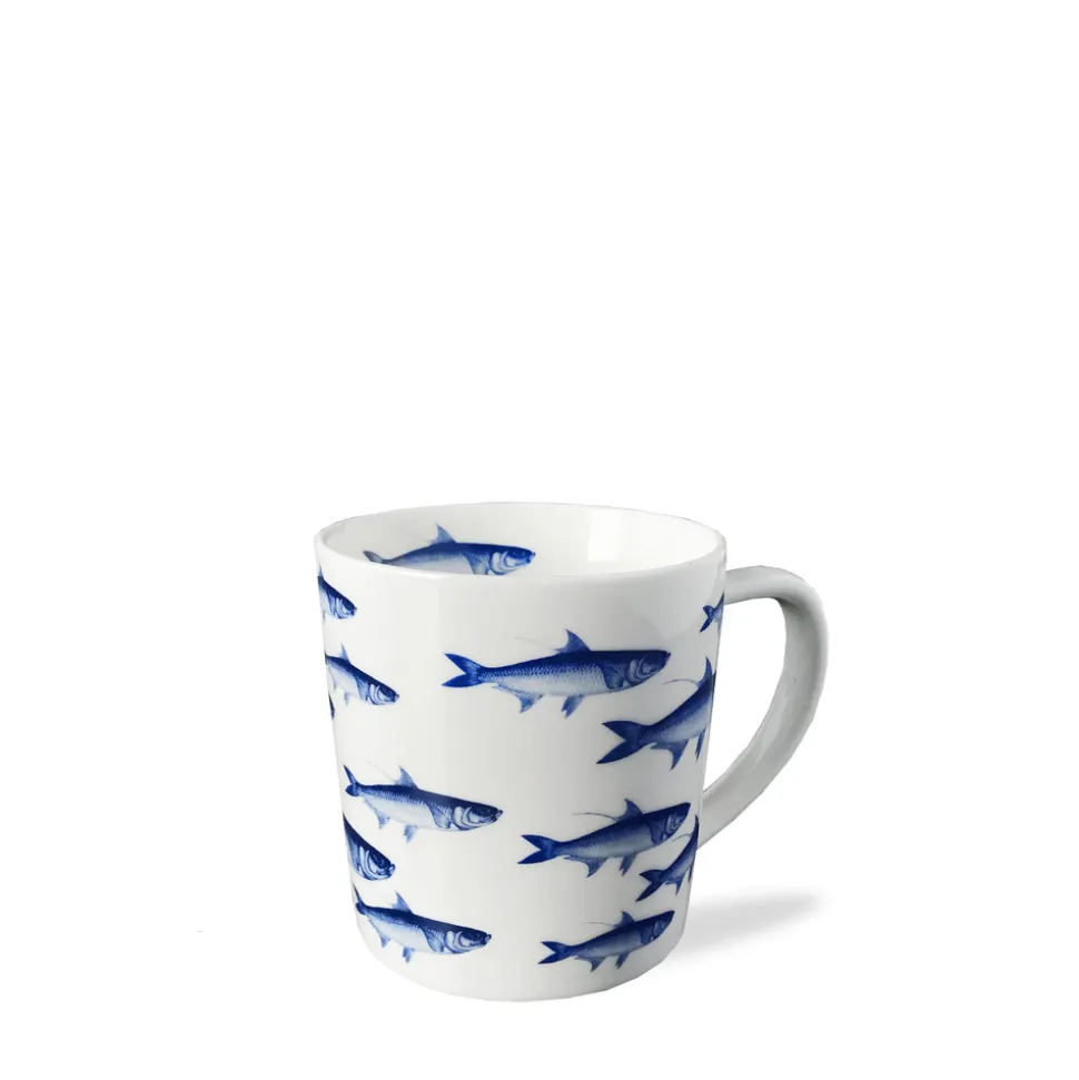 Caskata makes dinnerware for those who love to entertain. That joie de vivre and celebratory atmosphere makes its way into each piece of the brand’s blend of classic and contemporary designs, recognizable by their creative patterns, enduring quality, and light touch. The School of Fish series features collections of brilliant blue, delicately detailed fish, which swim playfully across the surface of creamy, premium porcelain. The School of Fish Mug Blue is a well-balanced and generously sized mug with which to take your morning coffee, or afternoon tea.