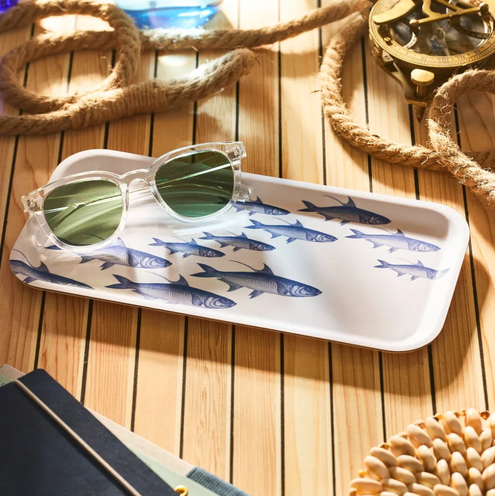 Caskata makes dinnerware for those who love to entertain. That joie de vivre and celebratory atmosphere makes its way into each piece of the brand’s blend of classic and contemporary designs, recognizable by their creative patterns, enduring quality, and light touch. The School of Fish Small Rectangular Birchwood Tray adds a touch of coastal charm. Try it as a soap holder in the bathroom or the kitchen. Use it as a catchall for keys and small bits, or serve crackers and small bites in a tray that’s as comfortable outdoors as in. Solid in your hands, this birchwood tray coated in a soft-touch melamine surface that feels like paper but cleans up with a damp sponge. No stains, no scratches, just stylish, strong, sustainable and good-looking.