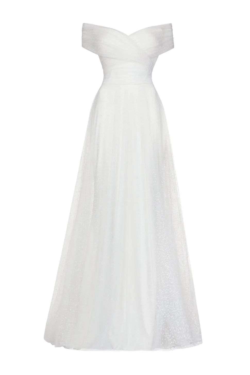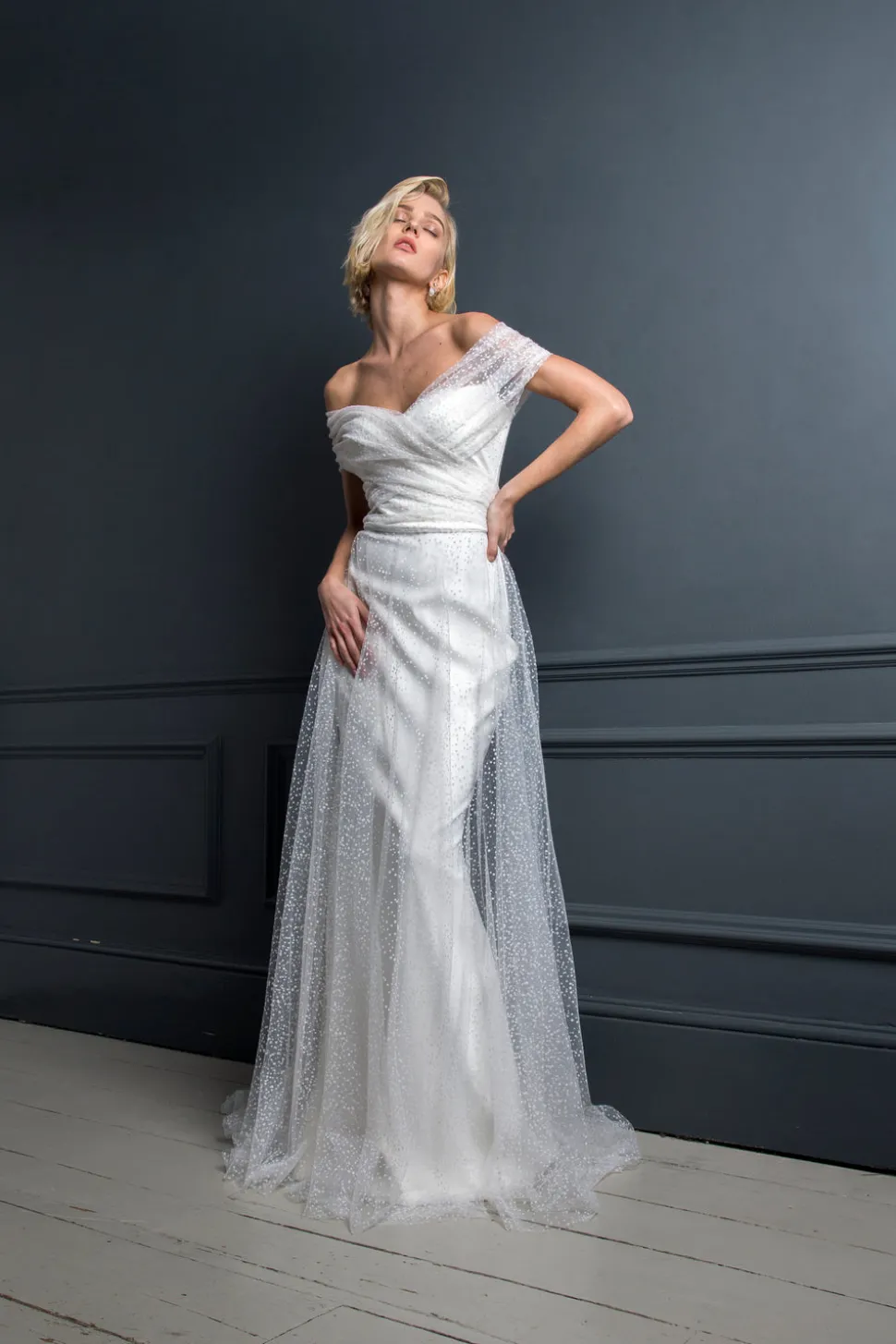 Luxury bridalwear brand Halfpenny London weaves Brit cool with a luxe sensibility, creating innovative, chic dresses and separates for the modern woman. The Scotty Dress is sultry and modest with its dual silhouette and off-the-shoulder design.
