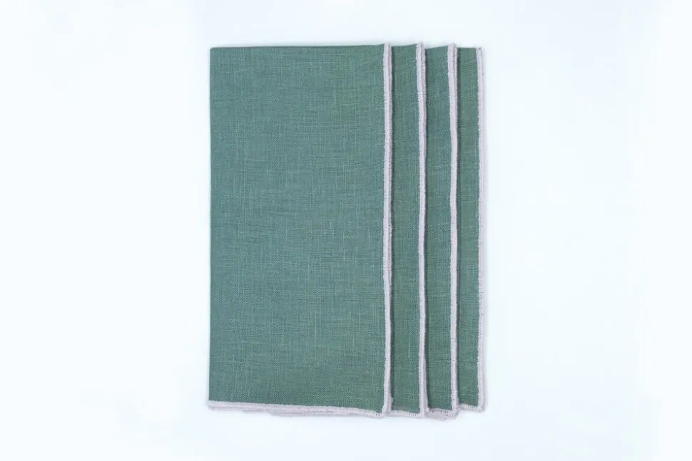 Founded in 2020 by three friends, TriChi looks to the intersection of the Mediterranean, Atlantic, and Anatolia for the inspiration for their superior clothing and homewares. Environmentally friendly manufacturing, the highest quality fabrics, and a passion for great design combine in the brand’s uniquely tasteful approach. TriChi’s linen napkins are exemplary tabletop additions, regardless of how formal or casual the affair. The Sea Sonen Napkin Pink Small Trim, Set of 4, present themselves in an easy shade of ocean green—and are elegantly decorated with a trimmed edge.