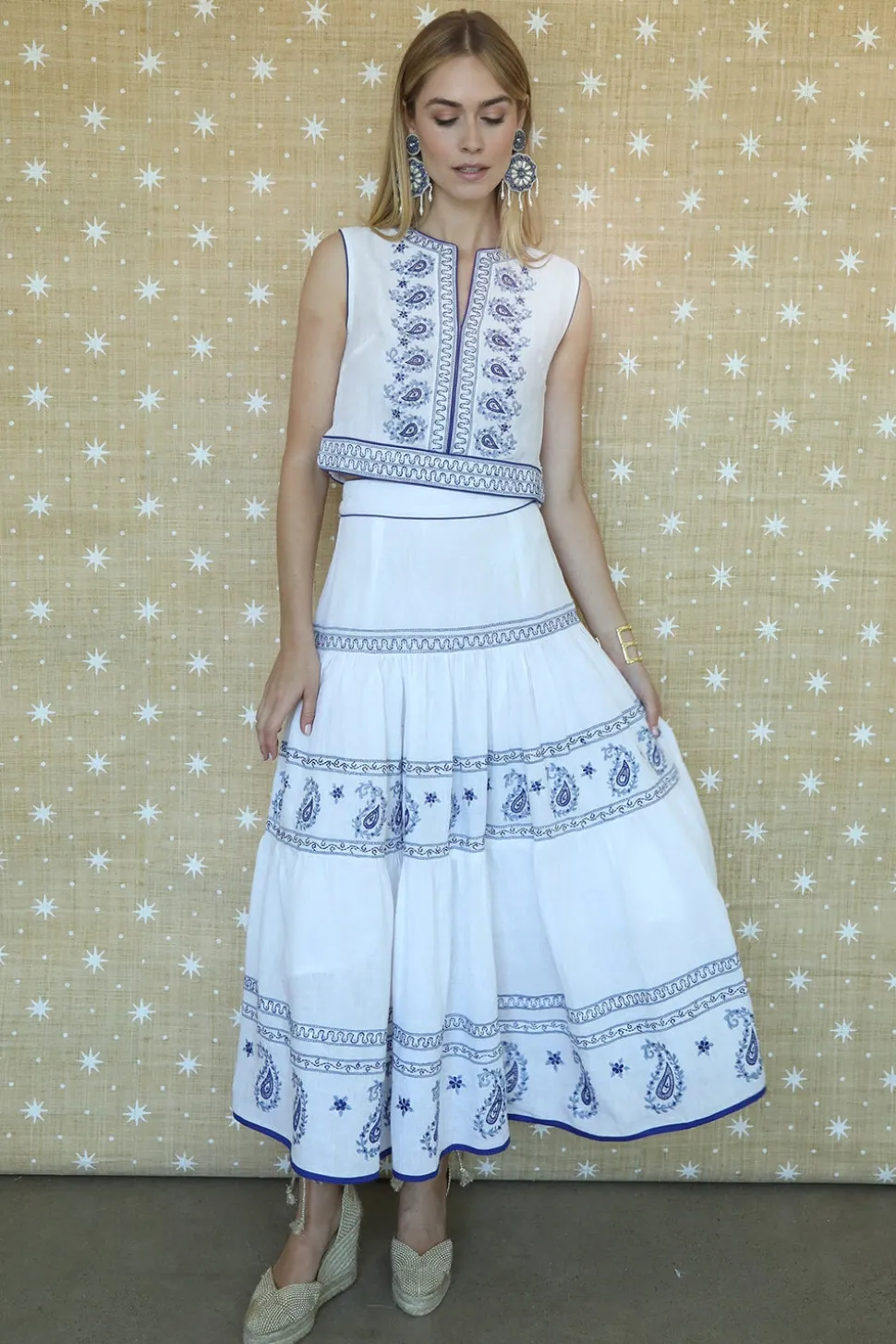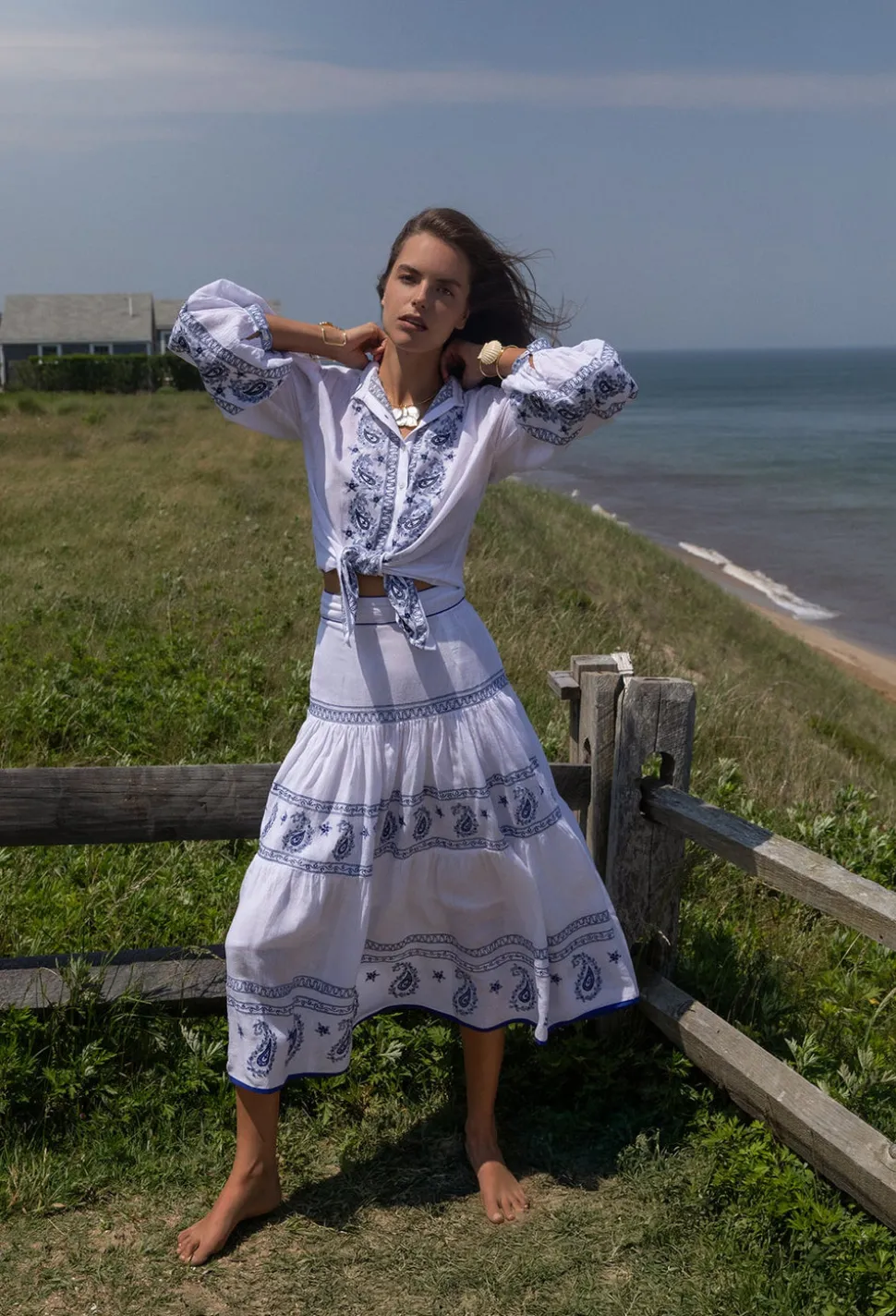 Inspired by art, architecture, and the founder’s global journeys, ASHA by Ashley McCormick introduces bold, sophisticated jewelry and accessories made from only the finest materials. From everyday glamour to the red carpet, these statement pieces are classic additions to your collection. The Seaside Blaire Tiered Skirt is a breezy, lightweight linen skirt designed for high summer days by the water. Its tiered silhouette offers effortless movement, making it an ideal complement to the Seaside Blaire Blouse or Top for a complete bohemian look.