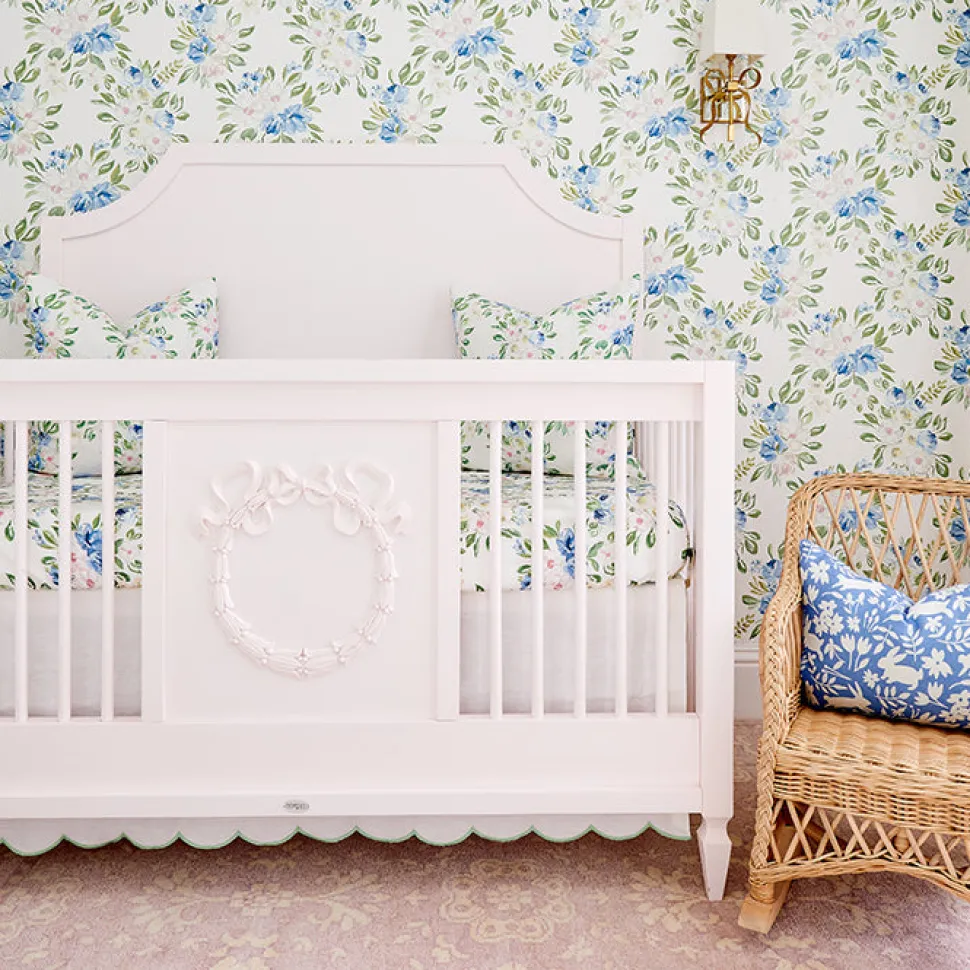Founded on timeless design principles, Caitlin Wilson Design blends sophistication and uniqueness, embracing a variety of styles. The brand features textiles ranging from antique-inspired Persian rugs to custom pillows, wallpaper, lighting, furniture, and more. With a focus on pattern and color, Caitlin Wilson Design creates distinctive, signature interiors that bring out the full potential of every space. Delicate garden botanicals in a sweet palette of green, blue, and blush will brighten your little one’s space with beauty and wonder. Pair this painterly Secret Garden Crib Sheet with stripes, solids, plaids, and checks for a charming statement in the nursery.