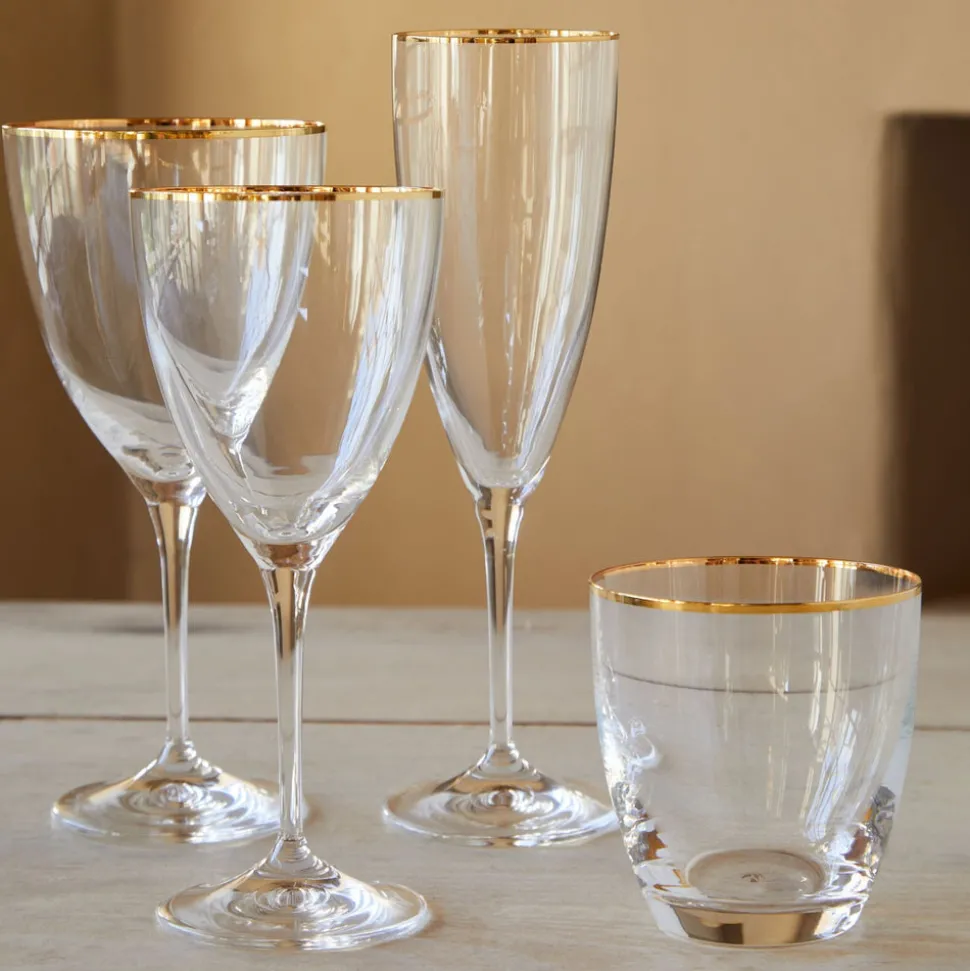 Costa Nova originated in a small Portuguese fishing village by the Atlantic Ocean. Carrying the name and heritage of Portugal worldwide, the brand creates fine stoneware and glassware collections that blend design, quality, and exceptional craftsmanship. The Sensa Collection Wine Glasses 9 oz. with Golden Rim, Set of 6 is crafted in Europe from crystalline glass, offering a refined silhouette and brilliant clarity ideal for both everyday use and special gatherings.