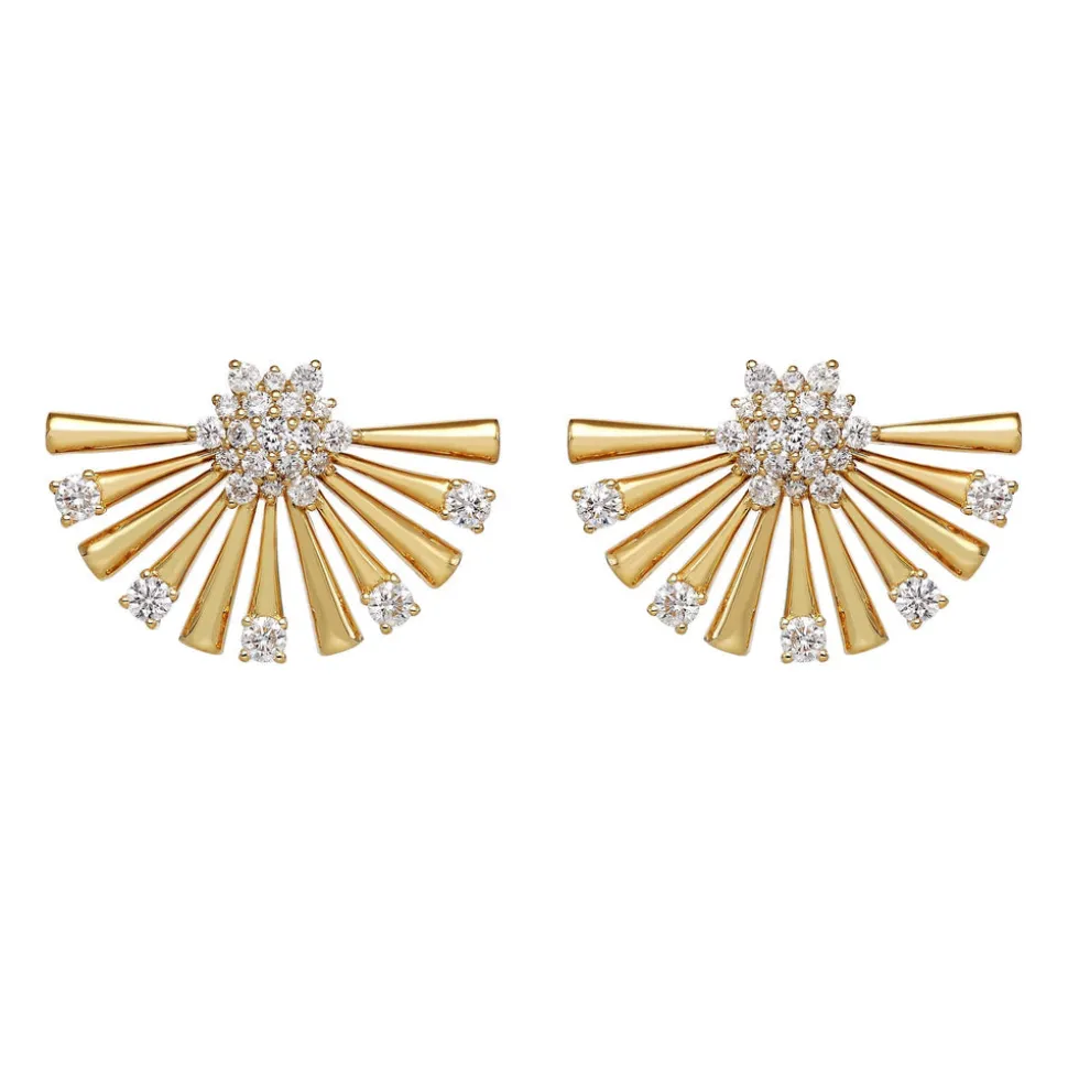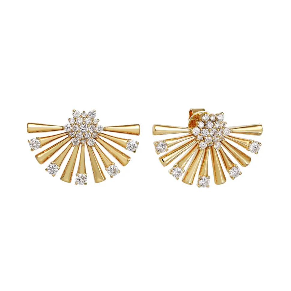 Luxury jewelry house, RUCHI New York, specializes in creating unique and versatile pieces that are exquisitely handmade and boast an heirloom quality. Crafted with precision in a variety of metals, each piece by this brand is designed to be cherished as a symbol of enduring love, whether it’s a stunning diamond ring or a timeless necklace. The Sensu Diamond Stud Earrings boast brilliant geometric fans accented with diamonds. Made to adorn your ears for all seasons.