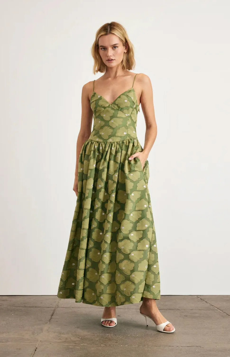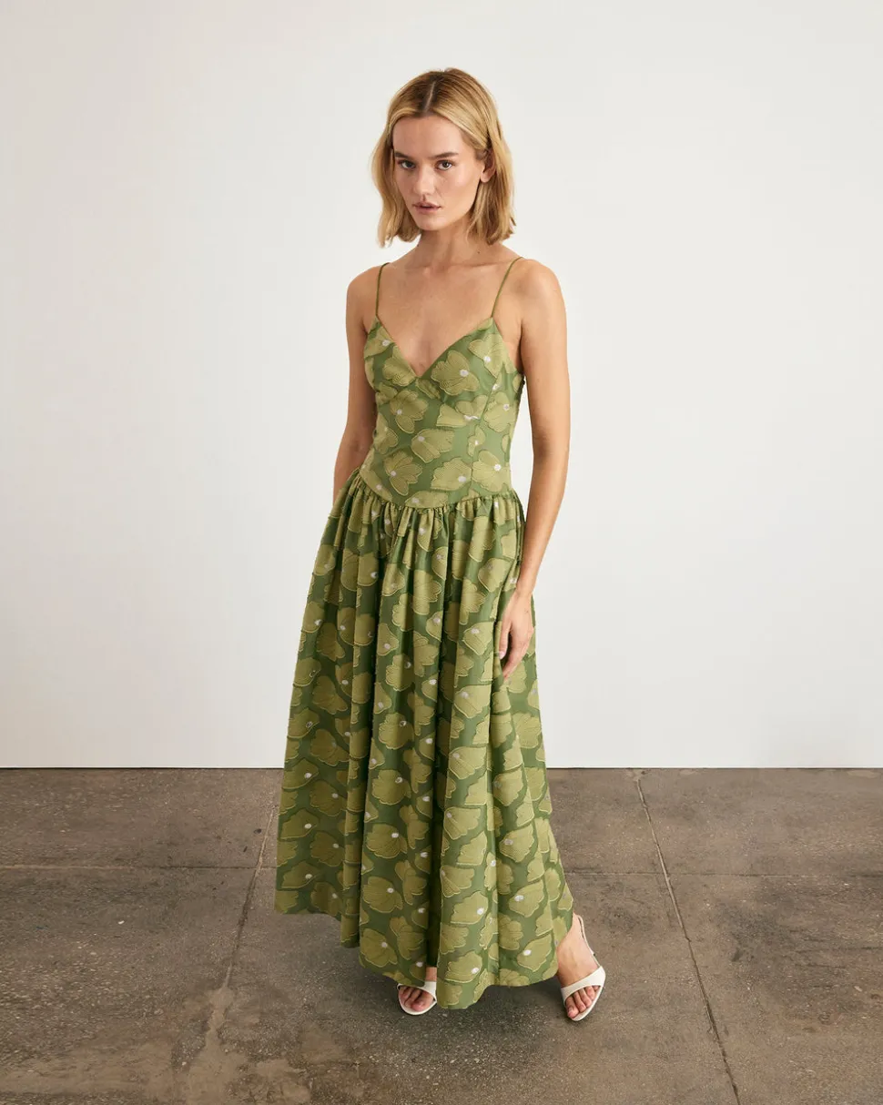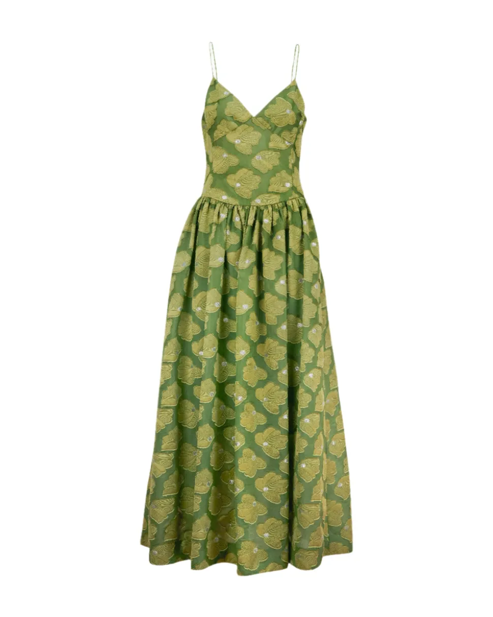 Creating clothing that inspires confidence, celebration, and community, Tanya Taylor is a New York-based womenswear brand whose mission is to provide practicality and style to a range of ready-to-wear in inclusive sizes. Each collection is thoughtfully designed through the artful use of color, texture, and original hand-painted prints. The Serena Dress in Avocado is a striking new silhouette for summer, designed to elevate event dressing with ease. Crafted in luxe fil coupé, it features a romantic sweetheart neckline, delicate straps, and a ruched skirt that moves fluidly with every step.