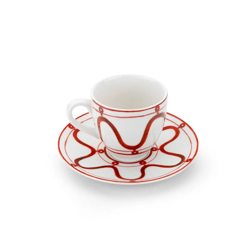 Inspired by her Greek heritage and summers spent in Mykonos, Themis Zouganeli launched THEMIS Z. Specializing in geometric patterns and clean lines, every design captures the easy-going glamour of Greece. Ethically sourced and handmade by artisans, THEMIS Z is committed to sustainable practices throughout their crafting process. The fine porcelain Serenity Coffee or Tea Cup is adorned with a hand-painted pattern in either green, beige, red, or blue.