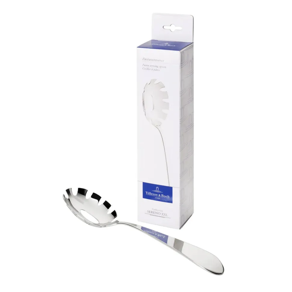 With over 275 years of heritage, this family-owned brand has become a global symbol of refined European living. Blending time-honored craftsmanship with forward-thinking design, Villeroy & Boch elevates everyday moments with beauty, quality, and enduring style. The Sereno XXL Pasta Serving Spoon in Silver combines sleek design with functional elegance. Presented in a stylish gift box, this polished silver-tone stainless steel spoon measures 11.75″ and is ideal for serving pasta and other festive dishes with refined style.
