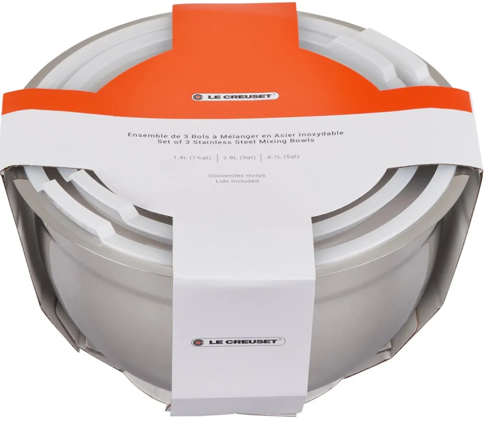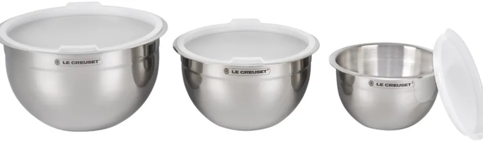 Recognized for its strength and durability, as well as its beauty and quality, Le Creuset produced the first enameled cast iron cookware nearly a century ago. A tradition of maintaining the finest culinary craftsmanship, combined with the latest innovations, means Le Creuset is known for blending classic form with real function and that it’s made for home cooks and professional chefs alike. Crafted from durable stainless steel with a brushed interior and polished exterior, the Set of 3 Nested Mixing Bowls w/ Nonslip Silicone Base & Plastic Air Tight Lids are the handy bowls no kitchen should be without. Nesting for easy storage, the silicone on the bottom of each bowl provides a slip-resistant base while cooking, while the airtight silicone lids are BPA-free and allow for efficient food keeping.