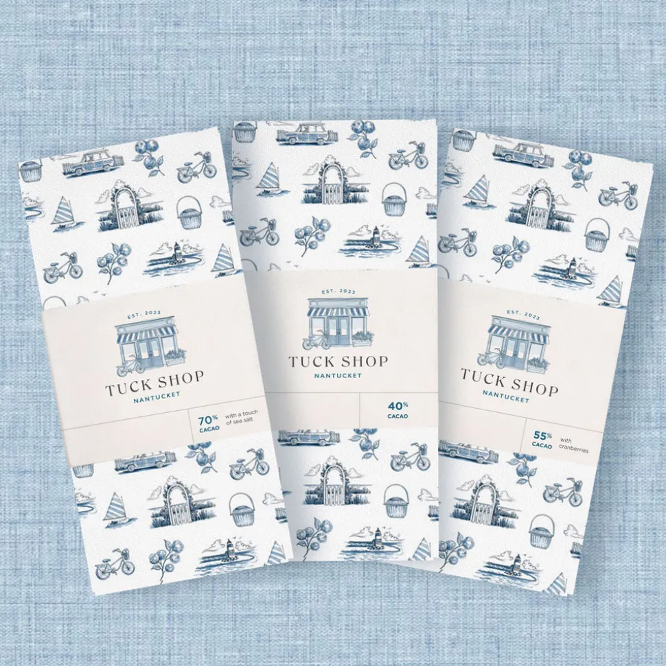 Sarah and Caroline’s friendship began on the Massachusetts coast, during their childhood summers on Nantucket. As they grew up, the two found themselves yearning for those simple, carefree days by the sea. With an unquenchable passion for all things sweet, Sarah and Caroline created Tuck Shop after their favorite little chocolate shop closed on the island. These chocolates not only tantalize the taste buds but also celebrate beloved destinations through packaging that captures each place’s charm. Tuck Shop proves that chocolate isn’t just dessert—it’s a gateway to relive moments that have shaped who we are. Whether it’s a thoughtful gift or a personal treat, the Set of Nantucket Milk Chocolate Bars will transport you to your own happy place.