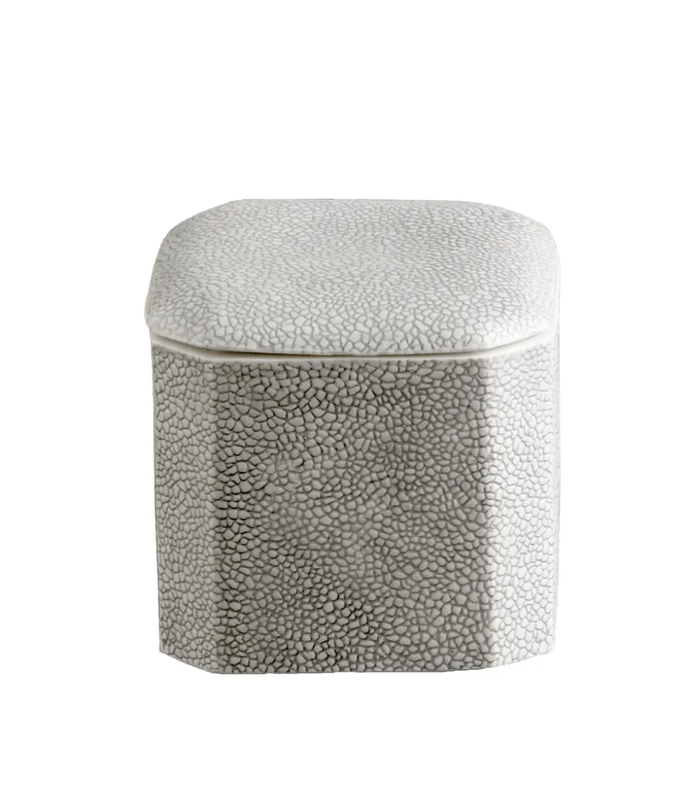 Based in New York’s Garment District, Kassatex’s linens bring more than just a sense of luxury into the modern home. Founded with old world values and a contemporary sensibility, their towels, sheets, and home goods bring the very best of Manhattan living, with texture, comfort and style. The Shagreen collection is crafted in fine porcelain and carefully embossed to emulate truly textured shagreen. The Shagreen Cotton Jar in Gray is a sophisticated storage option for cotton balls, bath beads, salts, and more.
