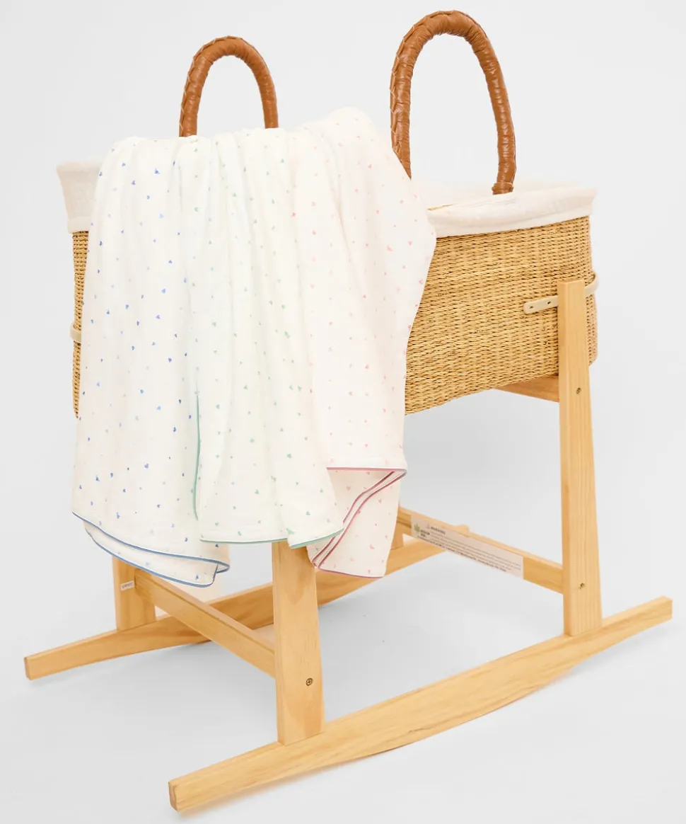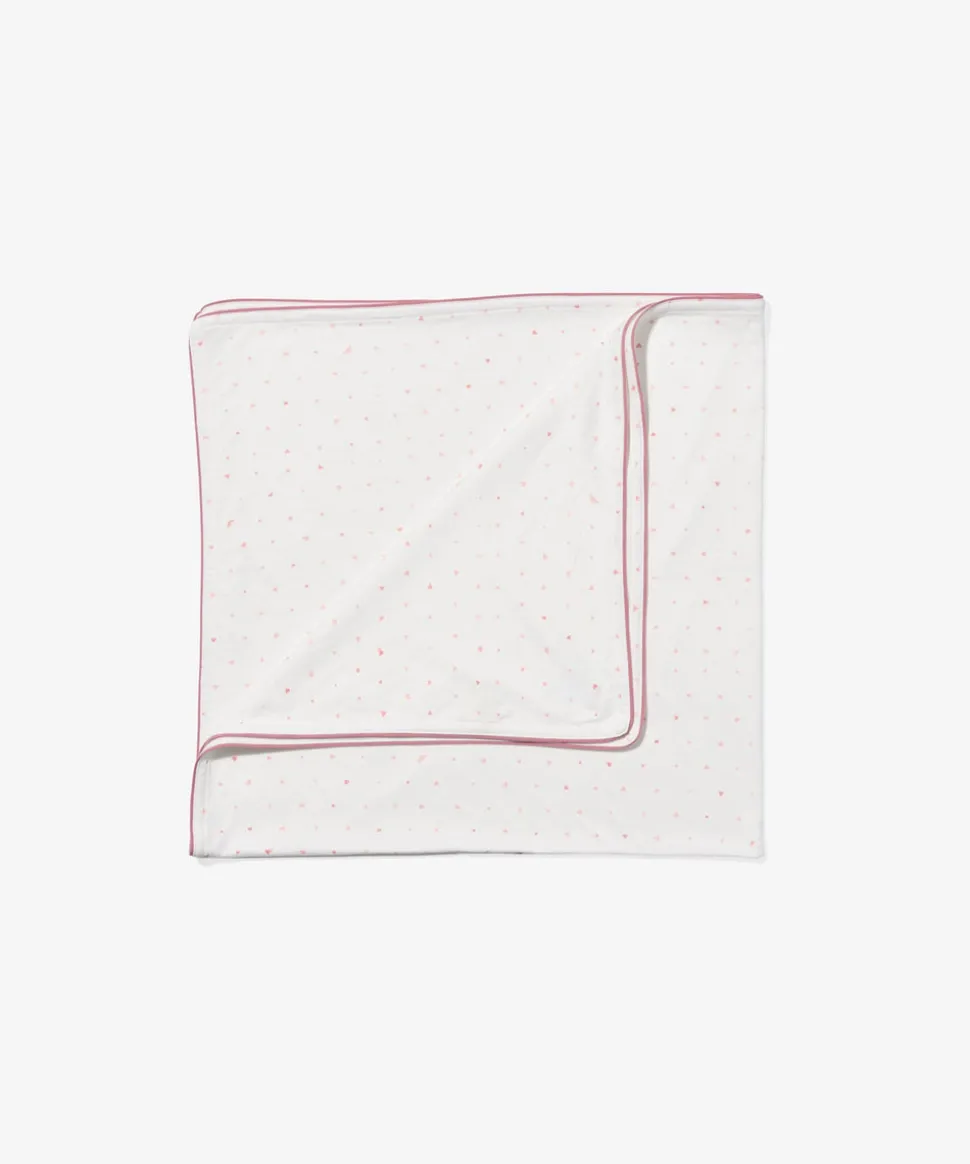 Oso and Me makes children’s essentials that are easily used, easily washed, and designed to make everyday moments joyful. Sustainably crafted with growing families in mind, each piece is made with an eye for detail and built to last. The Shane Blanket in Rose Hearts is a limited-edition essential, crafted from double-sided Float Jersey™—a luxuriously soft, breathable cotton knit that’s gentle on delicate skin. Finished with contrast piping and Oso’s signature hand-painted Hearts print, it’s the perfect cozy companion for naps, stroller rides, and snuggles alike.