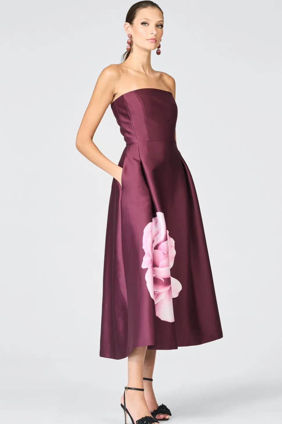 Born in India, Sachin and Babi bonded at New York’s Fashion Institute of Technology and launched an embroidery business, working with top houses, like Oscar de la Renta and Manolo Blahnik. Today, the brand works with their own factory in Mumbai, controlling quality at every stage, and producing womenswear that is at once unique, beautiful, and wearable. Simply put, the Shay Dress in Bordeaux Esperance is something special. This strapless, tea-length design features a fitted bodice that cascades into an A-line skirt, showcasing the brand’s exclusive Bordeaux Esperance print. The result is an elegant silhouette that feels both artful and timeless.