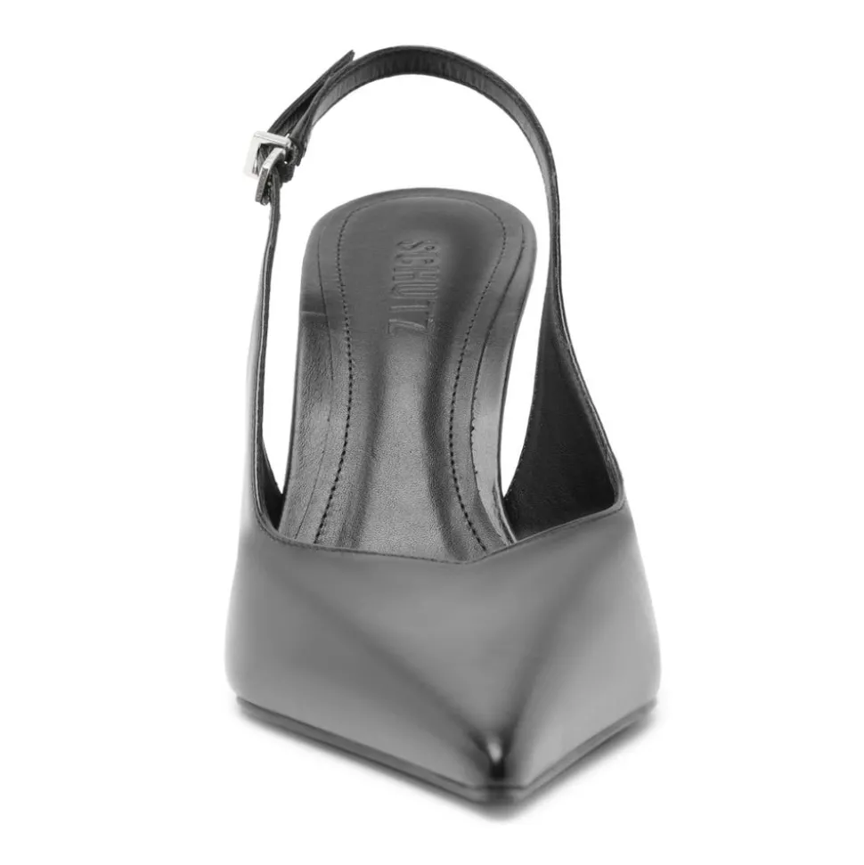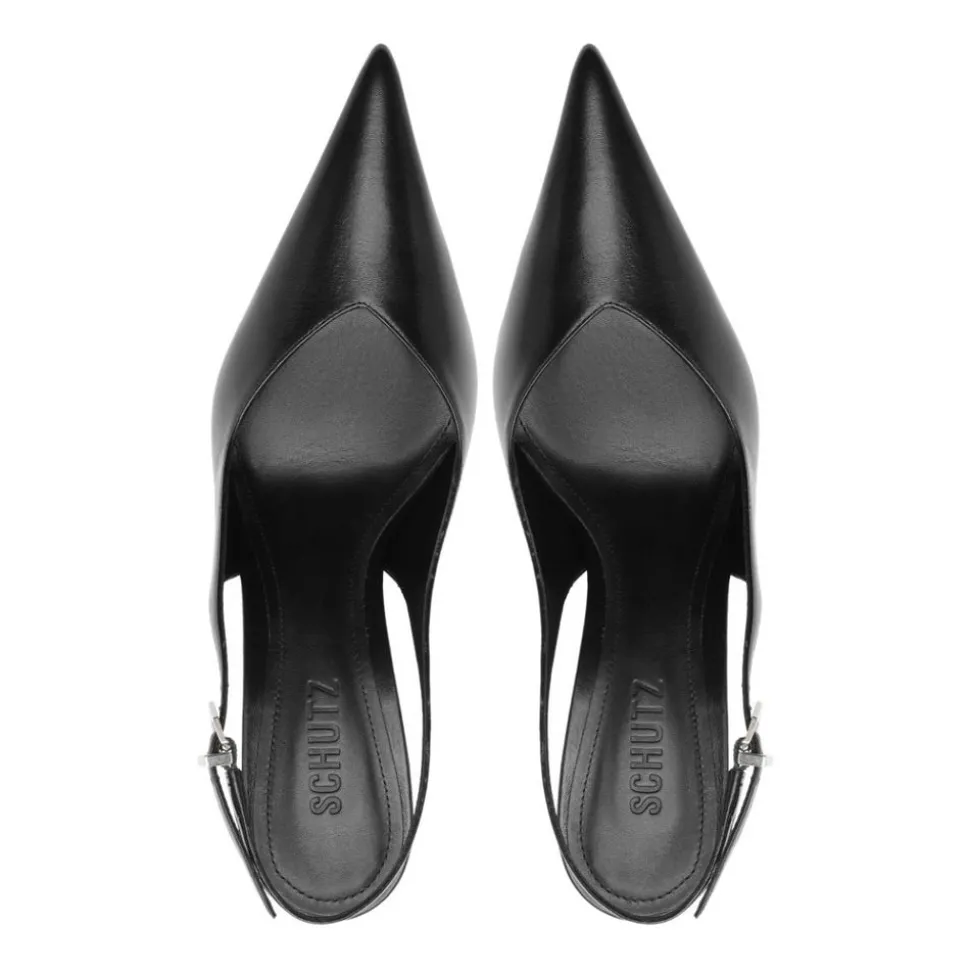 Founded in 1995 by Alexandre Birman, Schutz redefines attainable luxury with its stylish footwear. With each new release, the brand delivers of-the-moment collections, defined by confident, bold designs around which entire outfits can be built. The Siena Buckle Pump in Black blends architectural edge with sleek sophistication. Featuring a curved wedge heel, pointed toe, and wide slingback strap with metallic buckle detail, it adds a sculptural statement to denim, midi skirts, or oversized tailoring.