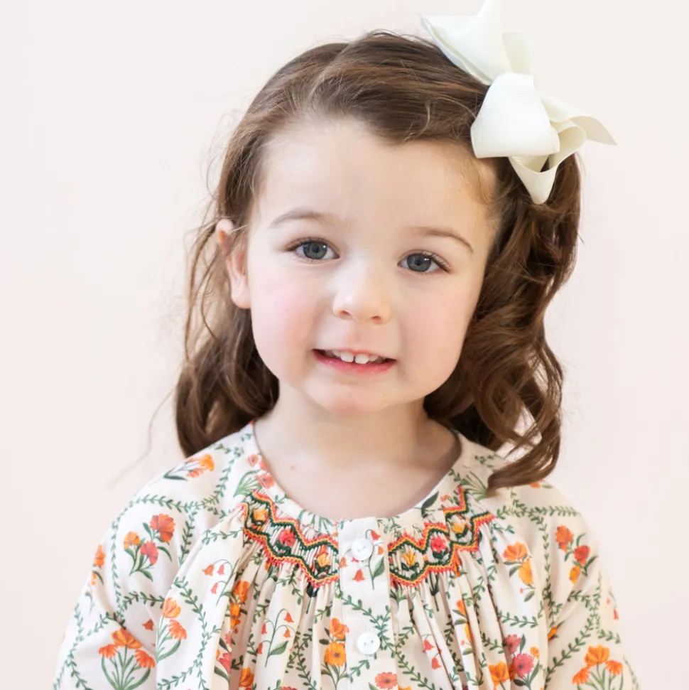 Inspired by the beauty of motherhood, Dondolo is a luxury lifestyle brand that provides beautiful, heirloom-quality clothing for generations to come. Each design is thoughtfully crafted in Colombia with ethical manufacturing, making every piece even more special. The Sienna Girl Dress captures the quiet elegance of fall in a timeless silhouette. Rendered in a vintage-inspired floral vine print of rich, earthy tones, it features delicate hand-smocking at the chest and ruffle sleeve detailing. Polished yet comfortable, this dress evokes nostalgic beauty for both special moments and everyday wear.