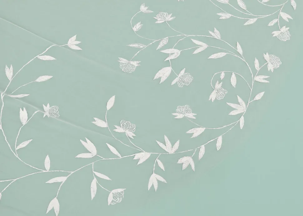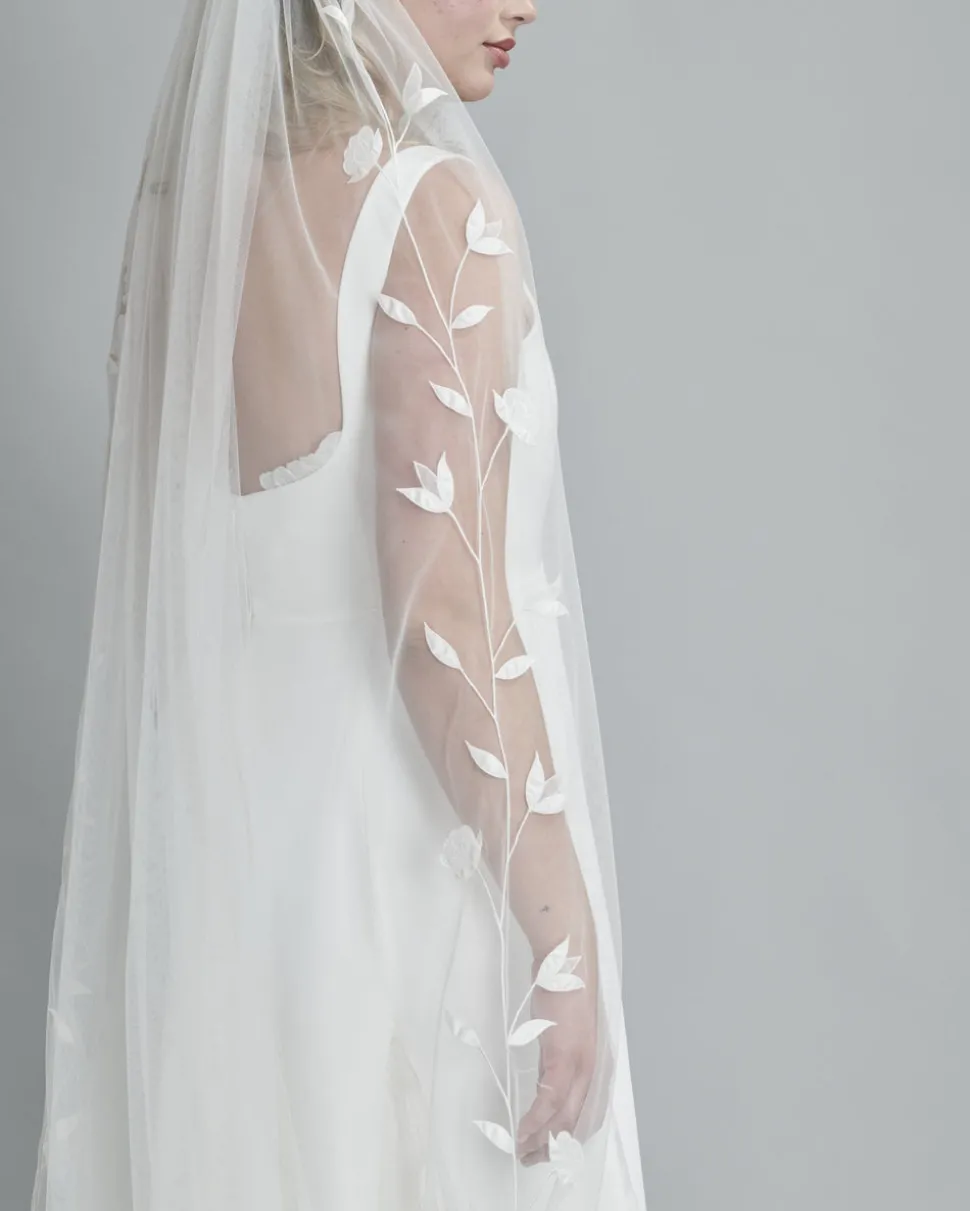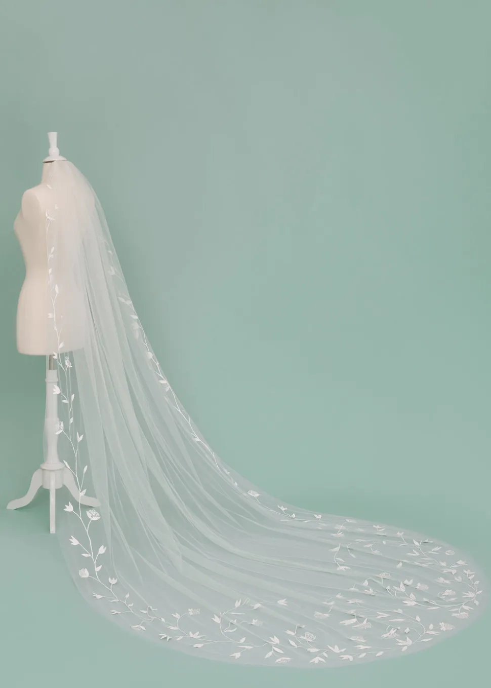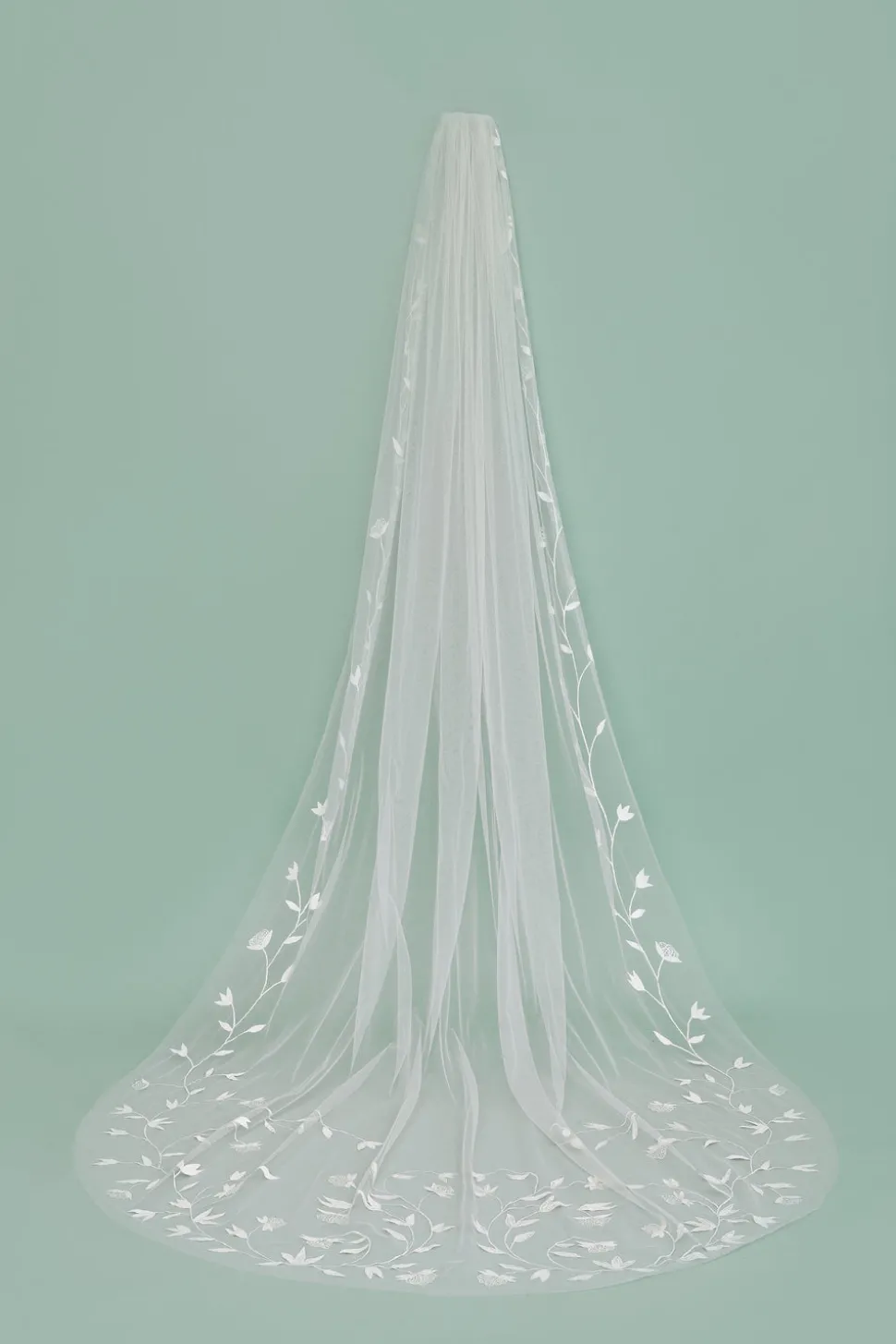 The Sienne Veil features hand-embroidered floral appliqué that brings the romance, and the floral trim concentrated at the edges adds just enough detail to complete your perfect look.