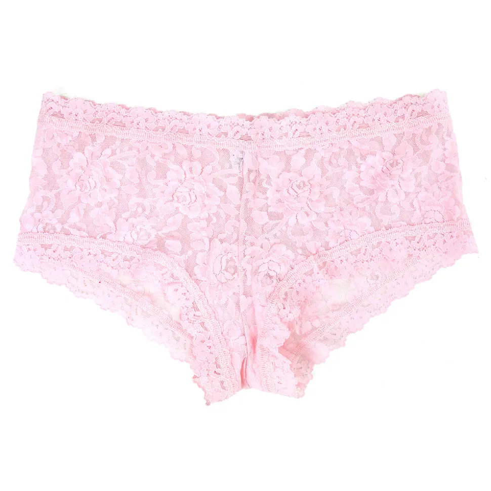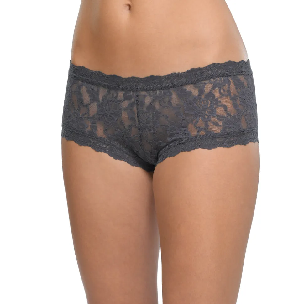 Hanky Panky’s signature V-front and V-back waistband revolutionized the world of lingerie 30 years ago and has put an end to panty-lines. Soft and stretchy, Hanky Panky officially makes the World’s Most Comfortable Thong. The Signature Lace Boyshort offers back coverage and rolls up easily in your lingerie drawer.