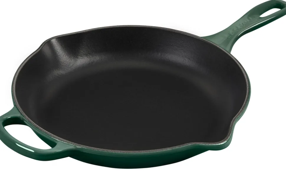 The enameled cast iron Signature Skillet is a versatile kitchen essential for searing, sautéing, stir-frying, and more. The interior surface is finished with a black satin enamel that eliminates the need for the traditional seasoning and maintenance of raw cast iron. Specially formulated for higher surface temperature cooking, the enamel develops a natural patina over time making it virtually nonstick and easy to clean.