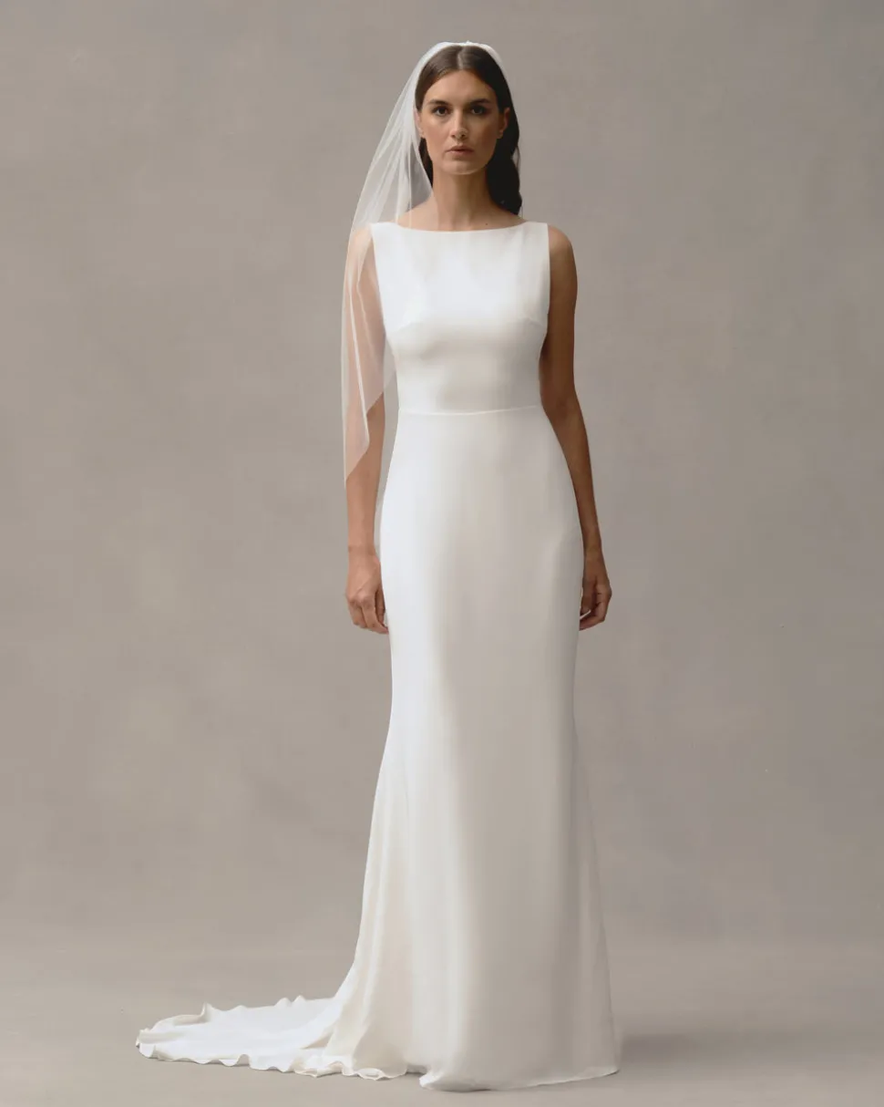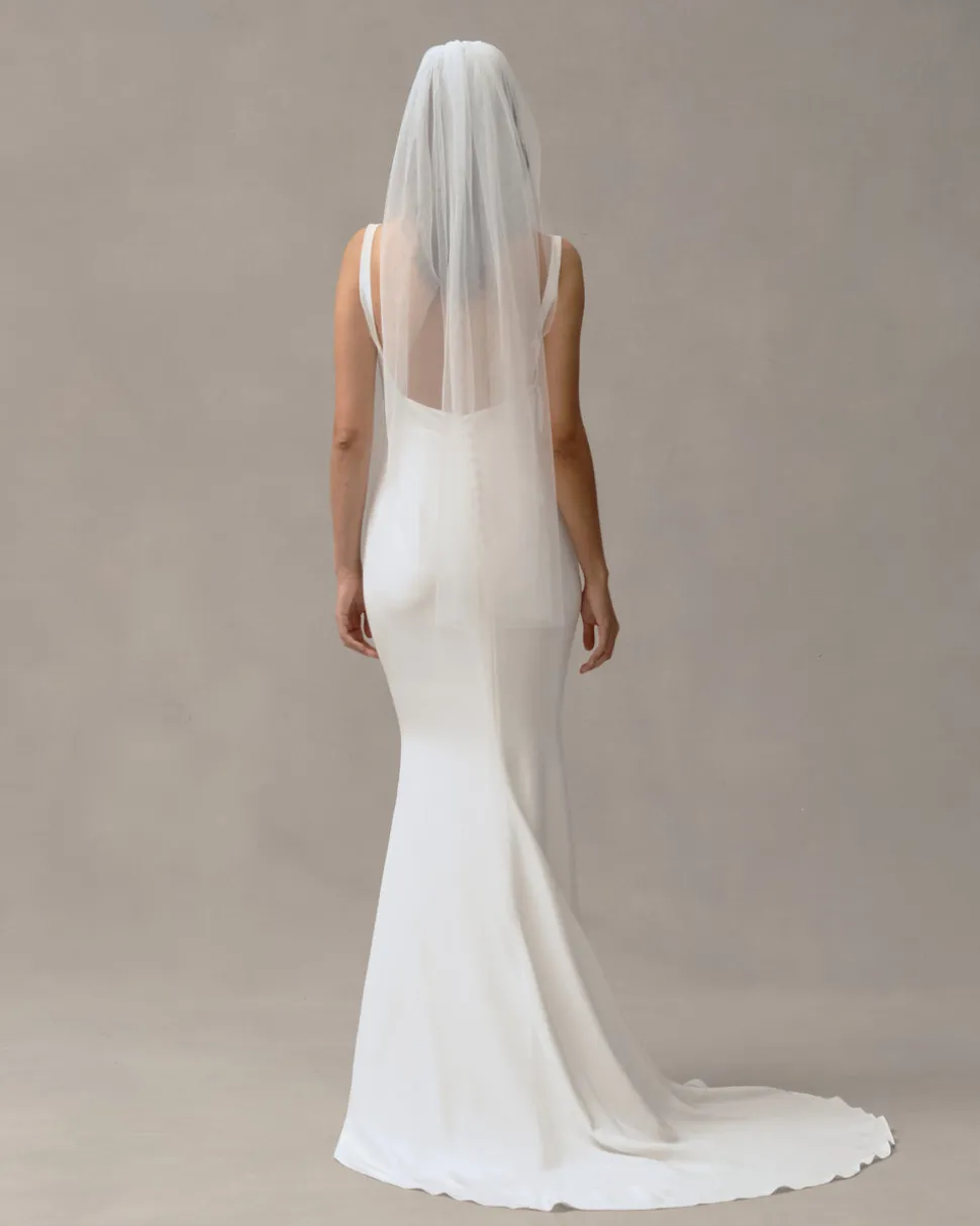 The Fingertip Length Veil is a short twist on the classic bridal accessory. Made-to-order, each Signature Veil is uniquely beautiful. For a longer veil, consider the floor-length Signature Veil.